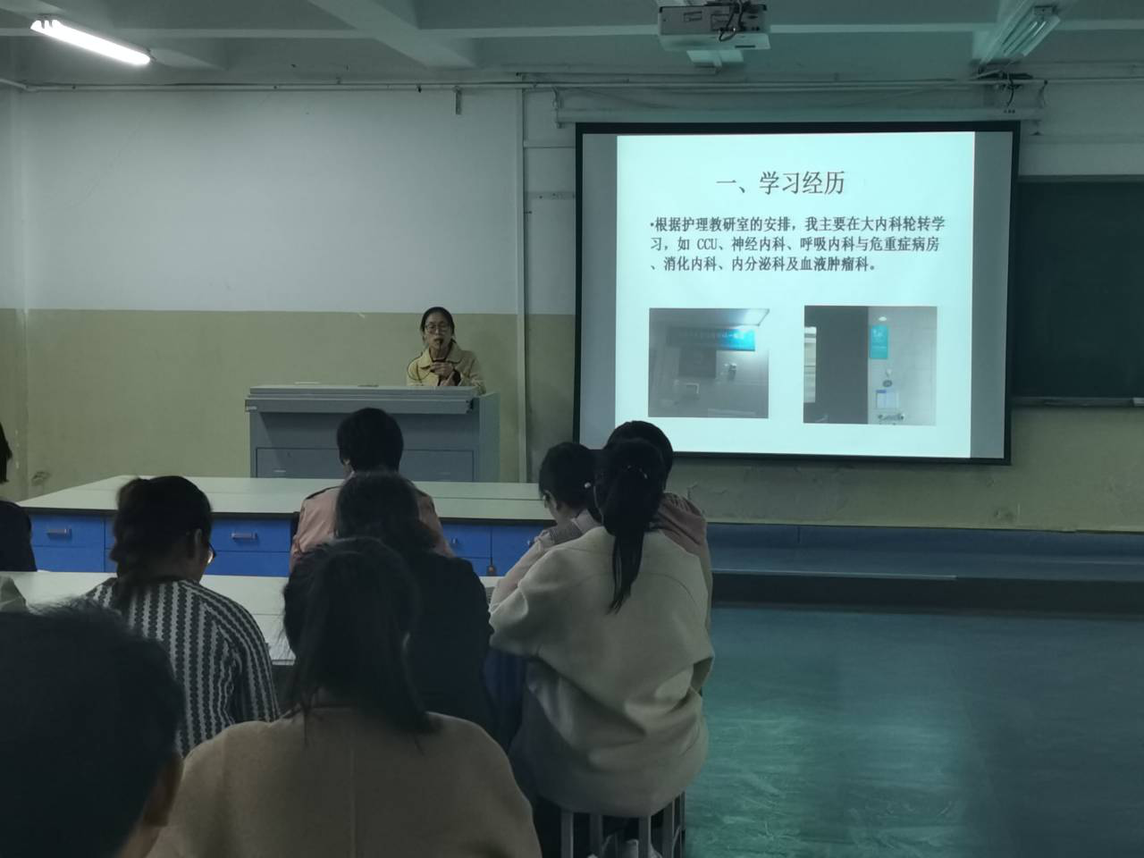 与会教师均毫无保留的分享了自己的所学所获,参加国培的宋文颖老师介绍了康复专业双师型教师培养的最新理念,参加省培的冯顺利老师分享了SP资源的开发和利用相关知识,王金库老师给大家带来了护理专业教师能力提高的新思想、新理念,还有4名老师分享了自己在临床上的所见所闻,典型病例等。