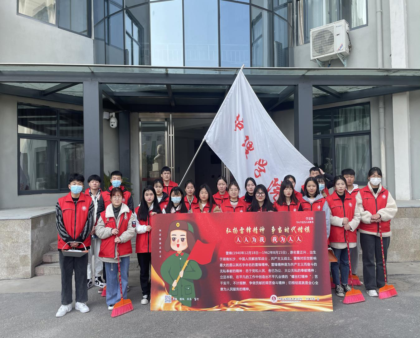 三月文明礼貌月,根据公司要求开展以“发扬雷锋精神,弘扬时代文明新风”为主题的系列实践活动。护理公司积极响应公司号召,于2021年3月2日下午开展校园大扫除志愿活动,让同学们更好地发扬雷锋精神,弘扬时代新风。