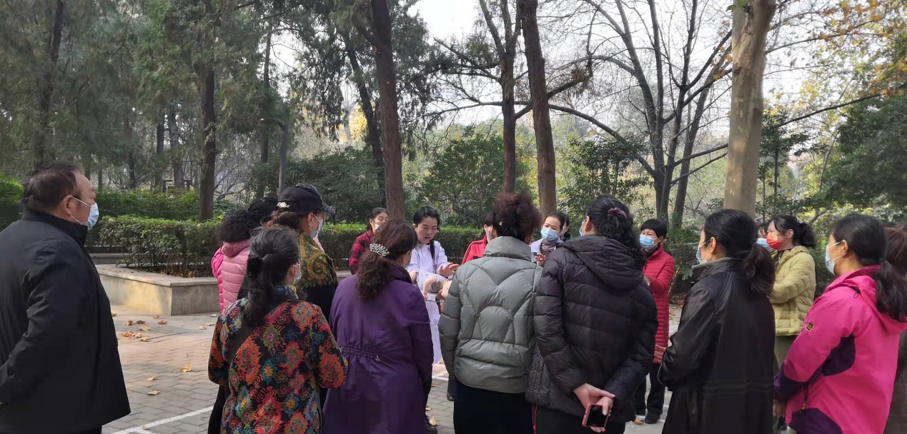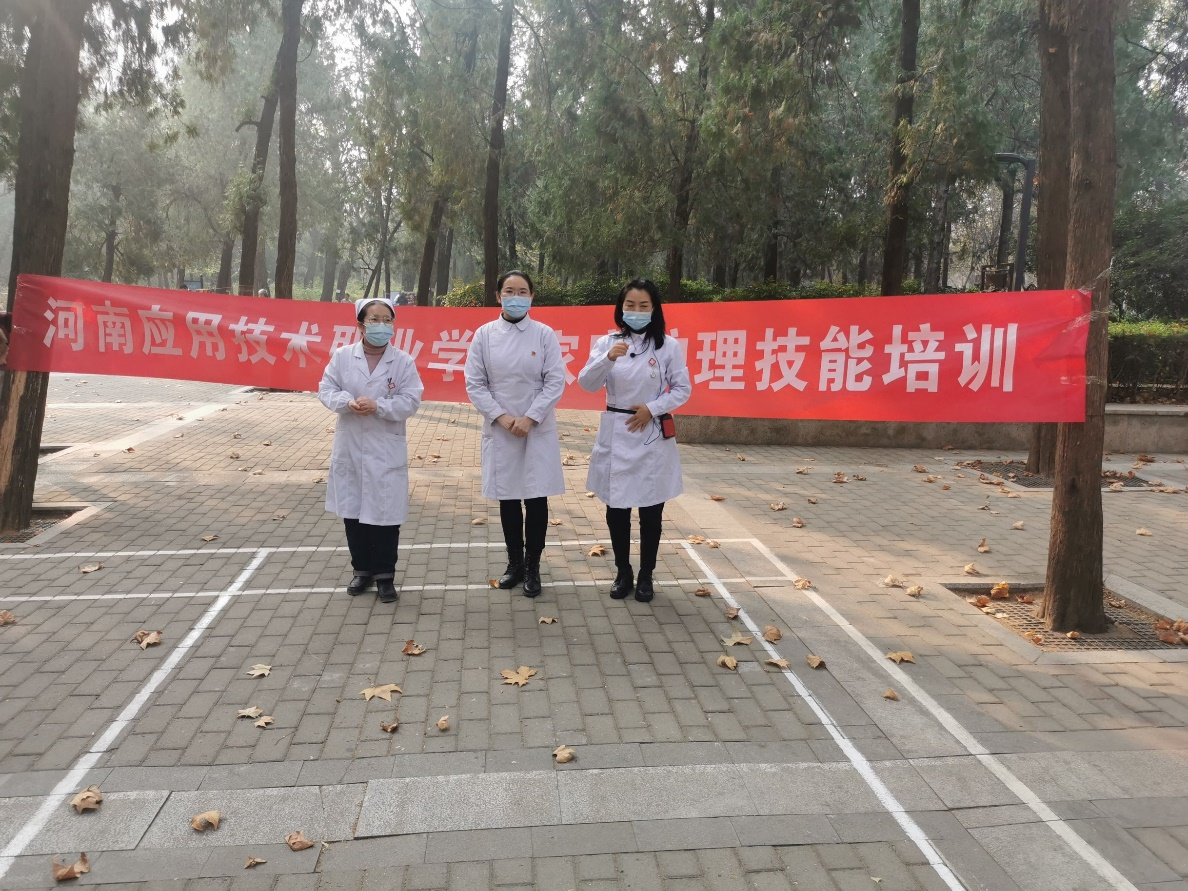 为了更好的普及家庭健康教育,让更多的人群掌握家庭急救与护理,2021年11月19日上午,304永利集团护理公司基护教研室杨丽萍主任、刘丽老师、石豫洁老师来到郑州市碧沙岗公园,五一公园及人民公园,向广大人民群众进行家庭急救与护理知识的普及。