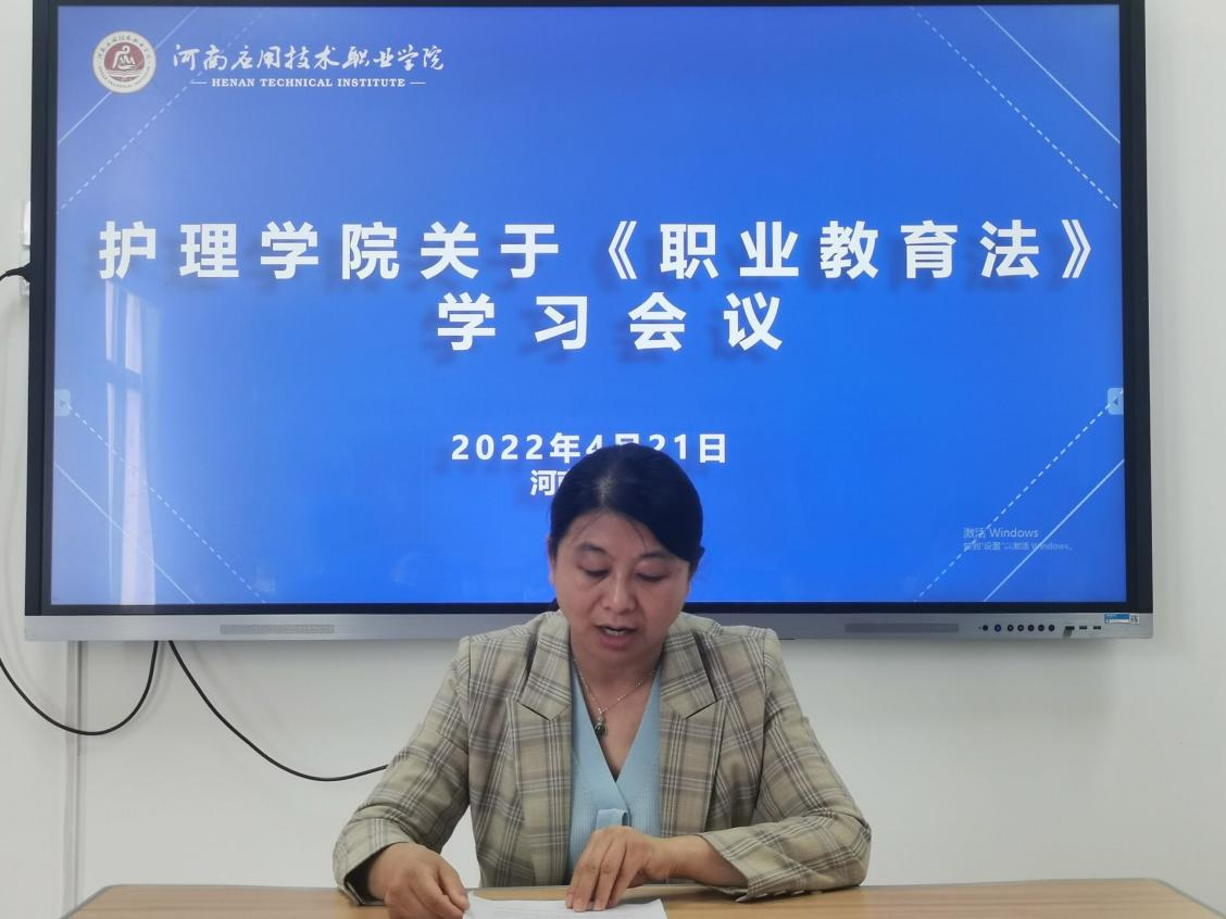 为进一步提升护理公司教师的职业素养,304永利集团护理公司关于《中华人民共和国职业教育法》(以下简称《职业教育法》)学习会议于2022年4月21日下午2:30在A515顺利召开。由王风云经理领学。