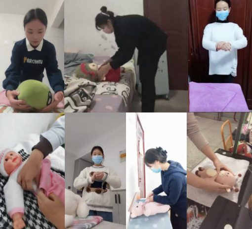 本次竞赛包括理论与实操两部分的比拼,19:00整,37名选手通过学习通作答育婴员相关知识,19:30又分为两组进行了婴儿抚触操作。婴儿抚触是世界公认对婴儿健康有益的一项护理技术,是通过指尖来传递爱的方式。婴儿抚触对宝宝生长发育、智能发育、促进宝宝身心健康等方面都有积极作用,且操作较为简单易学。比赛全程通过腾讯会议进行录屏。