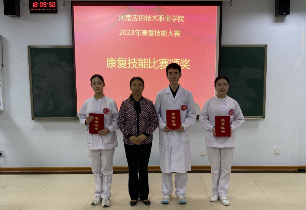 经过专业评委的最终评审,共有18名员工获奖,其中一等奖3名,二等奖6名,三等奖9名。护理公司经理王风云、康复治疗技术教研室主任邱晓静、外科护理课程负责人刘加艳及康复治疗技术专业带头人荆改丽分别为获奖员工颁奖。此次获奖员工将课堂所学转化为比赛中的优异成绩,为全体员工树立了“学以致用”的优秀榜样,也为此次竞赛画上了圆满成功的句号。