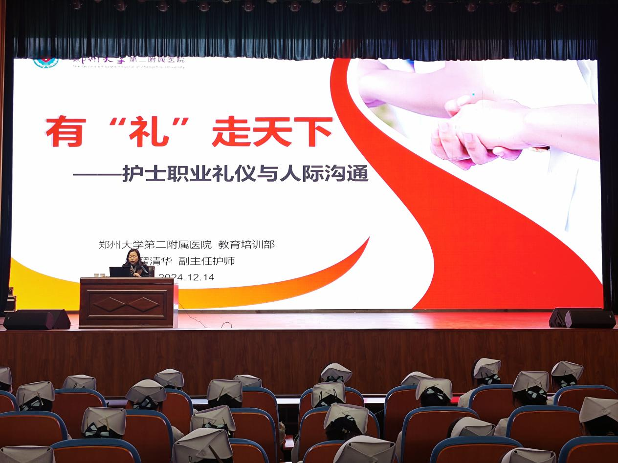 为提高护理专业2024级员工的职业礼仪与素养,12月14日下午,护理公司特邀请郑州大学第二附属医院教育培训部翟清华主任在员工活动中心成功举办了一场以“有‘礼’走天下”为主题的课程讲座。