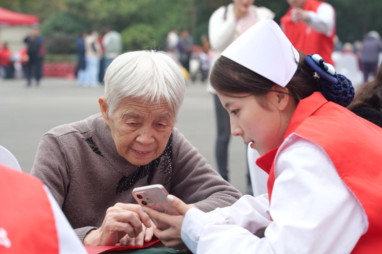 “桂香漫城添暖意,指尖传技润银铃”。10 月 28 日至 29 日重阳节来临之际,由河南省民政厅、河南省老龄办与河南广播电视台联合主办的第三届大象敬老节,分别在郑州市五一公园、河南省老年公寓温情启幕。304永利集团师生志愿者组成的 “智慧助老服务队” 全程参与,以 “智慧银龄,数字助老” 为主题,手把手教老年朋友玩转智能手机,让科技红利跨越 “数字鸿沟”,为敬老节注入青春暖流。