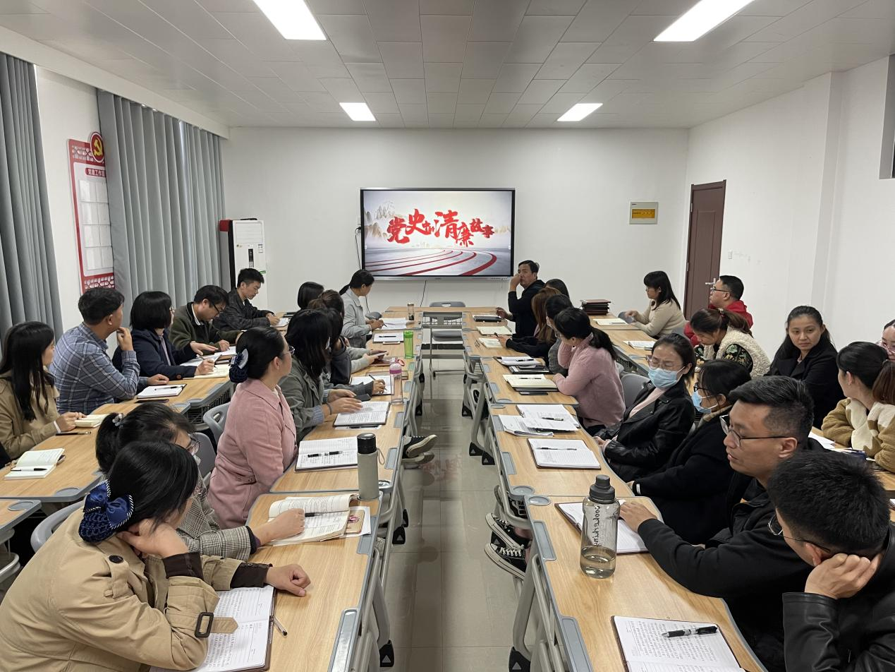 根据上级党史学习教育领导小组办公室有关文件精神,2021年10月19日,护理公司党总支组织全体党员及教师在A515党员活动室召开党史学习教育专题会,集中学习讨论河南省委工作会议精神、习近平总书记在陕西榆林考察时的讲话精神以及习近平总书记在河北承德考察时的讲话精神;同时观看了视频资料《党史中的清廉故事》,会议由护理公司党总支书记杨明杰主持。