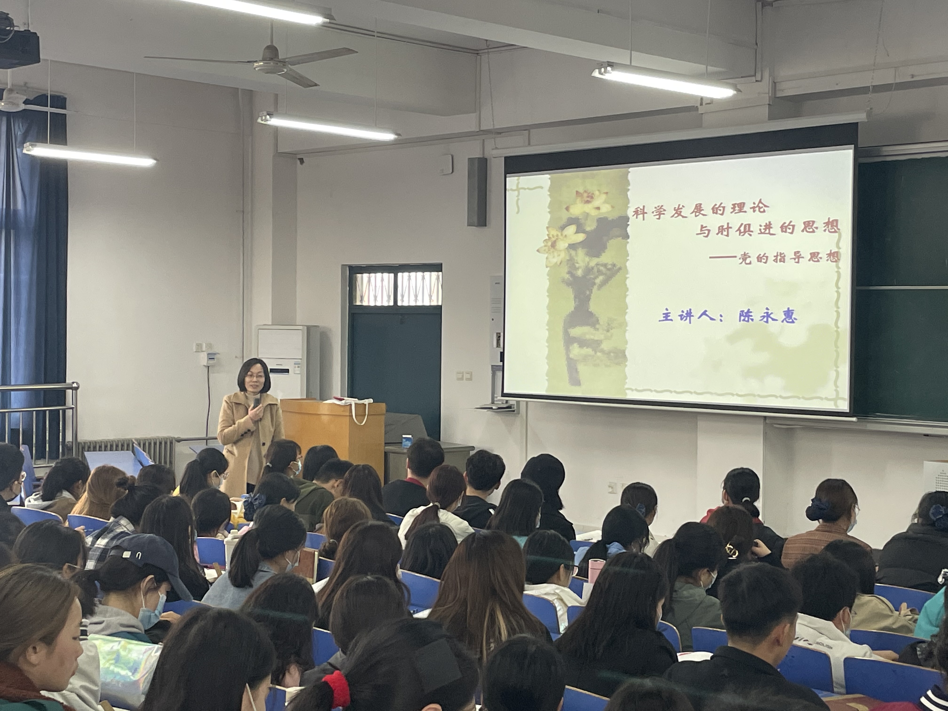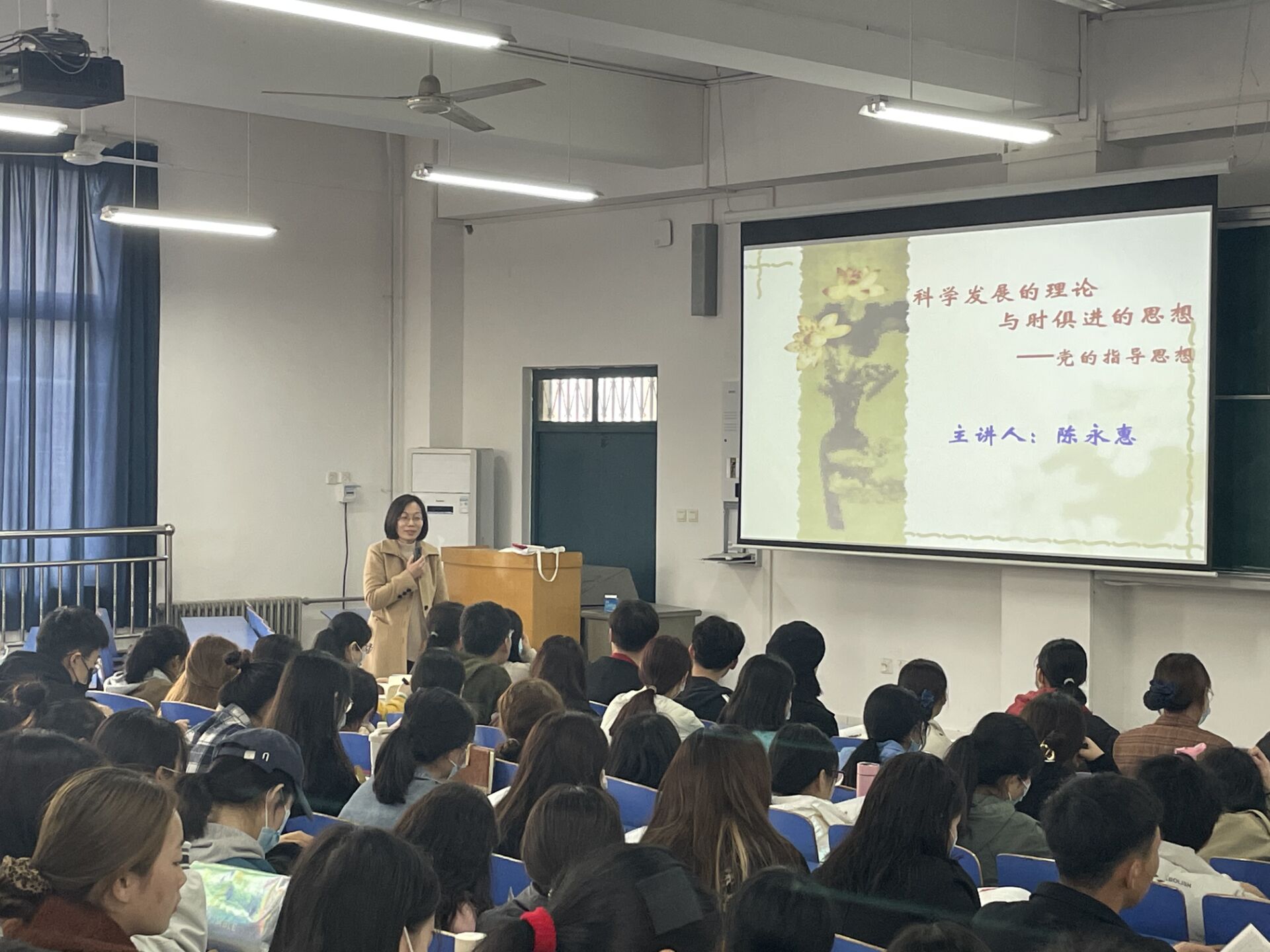 党课以《科学发展的理论,与时俱进的思想》为主题,内容围绕党的指导思想和中国特色社会主义理论体系展开,要求入党积极分子应认真学习贯彻马克思列宁主义,要将中国共产党的理论基础和行动指南作为严格要求自己的行动方向,陈经理其次指出,中国特色社会主义理论体由毛泽东思想,邓小平理论和三个代表重要思想以及习近平新时代中国特色社会主义思想相结合而不断发展壮大,并要求全体入党积极分子坚持党的指导思想,坚持科学发展理论,为中国特色社会主义事业的进步贡献自己的力量。