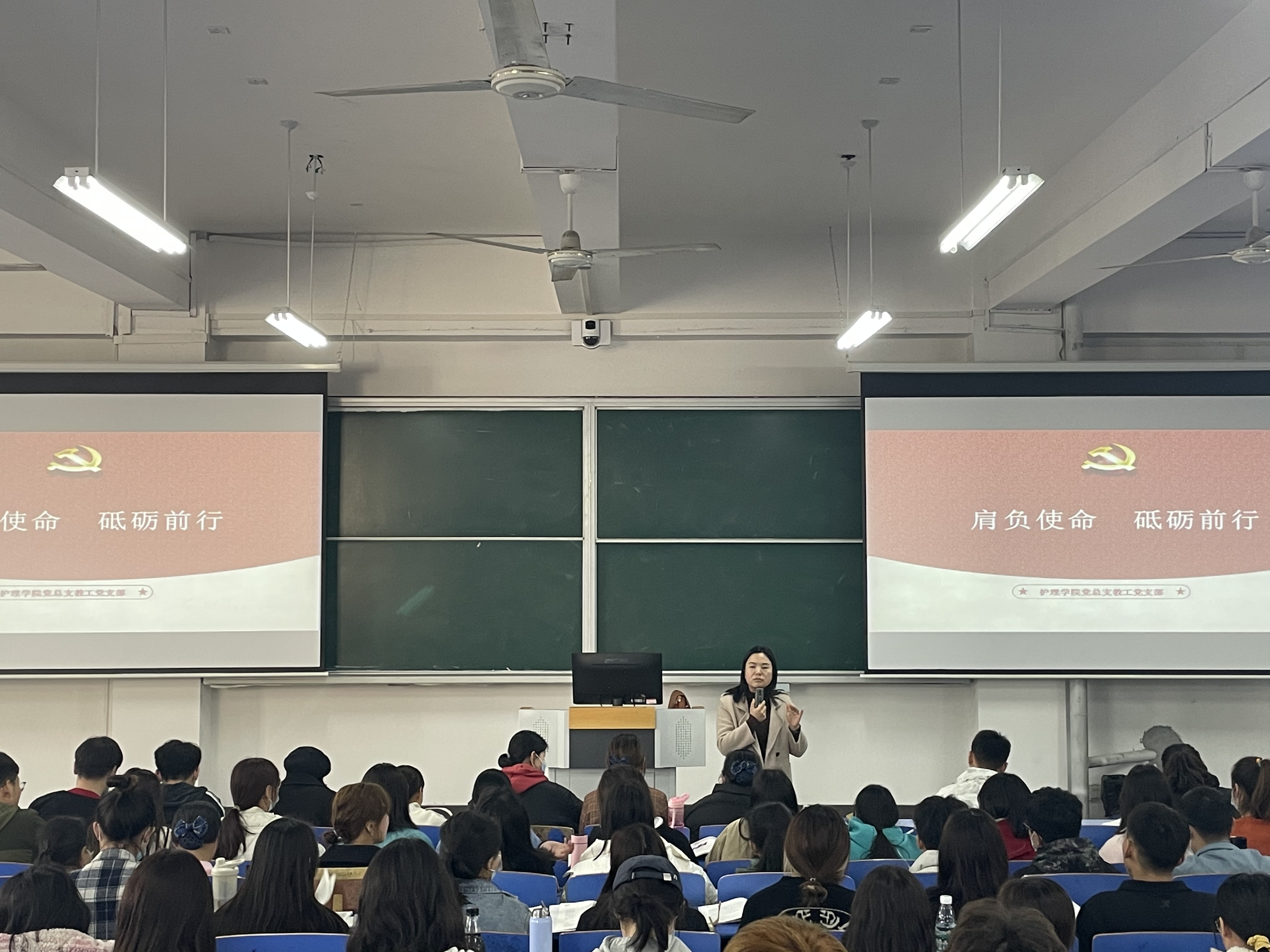 党课以《肩负使命、砥砺前行》为主题,并要求全体入党积极分子应找准人生方向、坚定理想信念、完善自身能力、磨练自身意志为主要目标,指出老员工肩负着实现中华民族伟大复兴的历史使命,肩负建设社会主义现代化的重任。坚定理想信念,走党的基本路线,全心全意为人民服务。