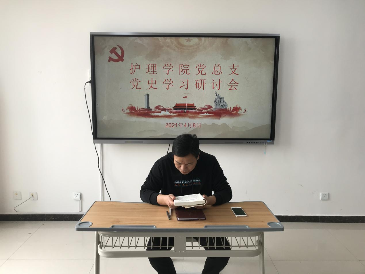 根据公司党史学习教育实施方案,2021年4月8日下午,护理公司党总支组织全体党员教师在A515党员活动室召开党史学习研讨会,集中学习讨论《论中国共产党历史-习近平》前三个部分,会议由护理公司党总支书记杨明杰主持。