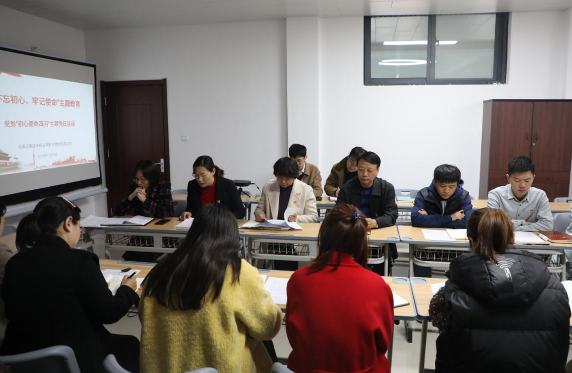 为贯彻落实“不忘初心、牢记使命”主题教育,紧扣主题教育“守初心、担使命,找差距、抓落实”总要求,护理公司党总支教工党支部于11月19日在党员活动室组织开展“初心使命四问”主题党日活动。公司党委书记秦书君同志作为普通党员身份参加此次活动。