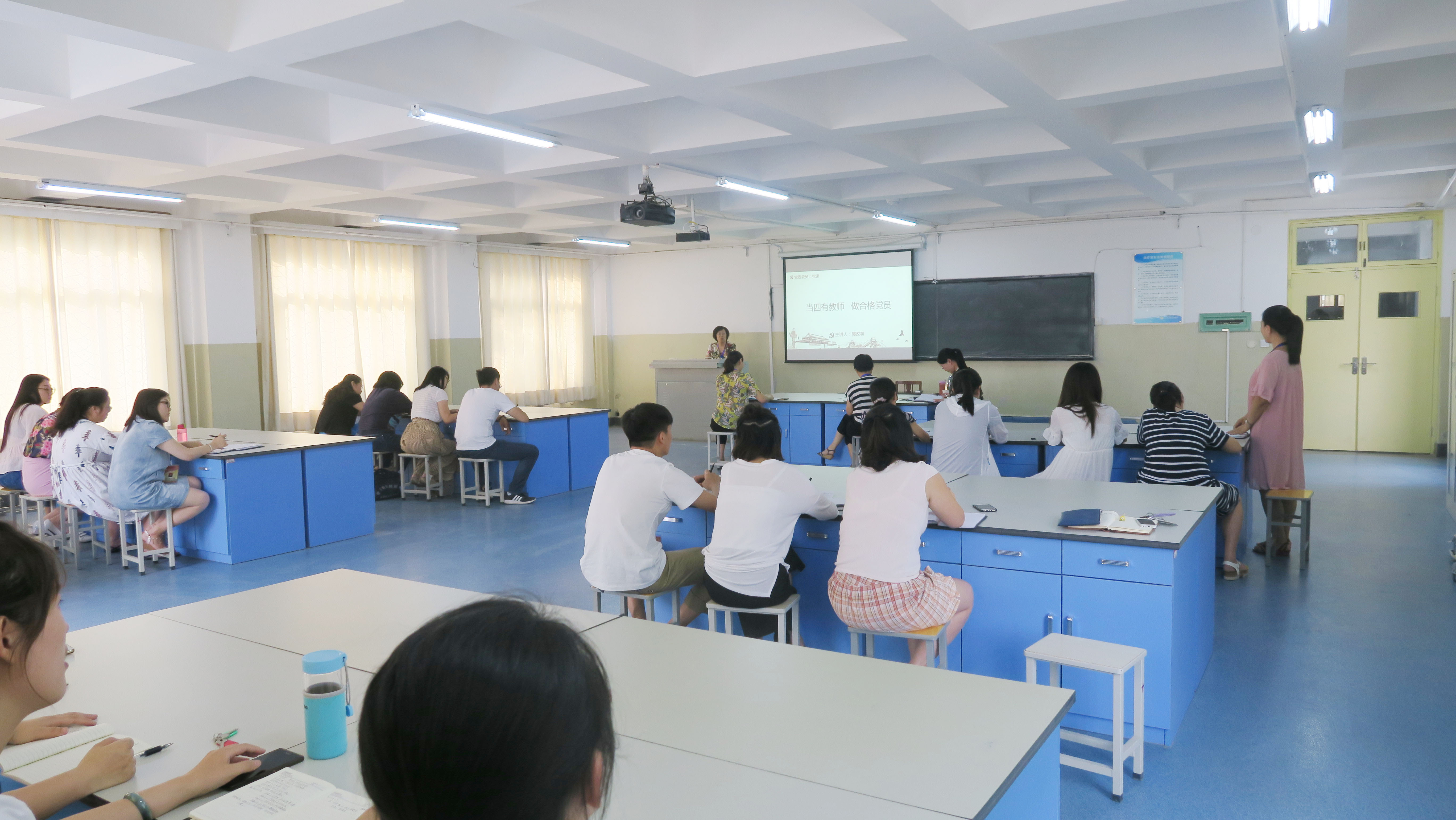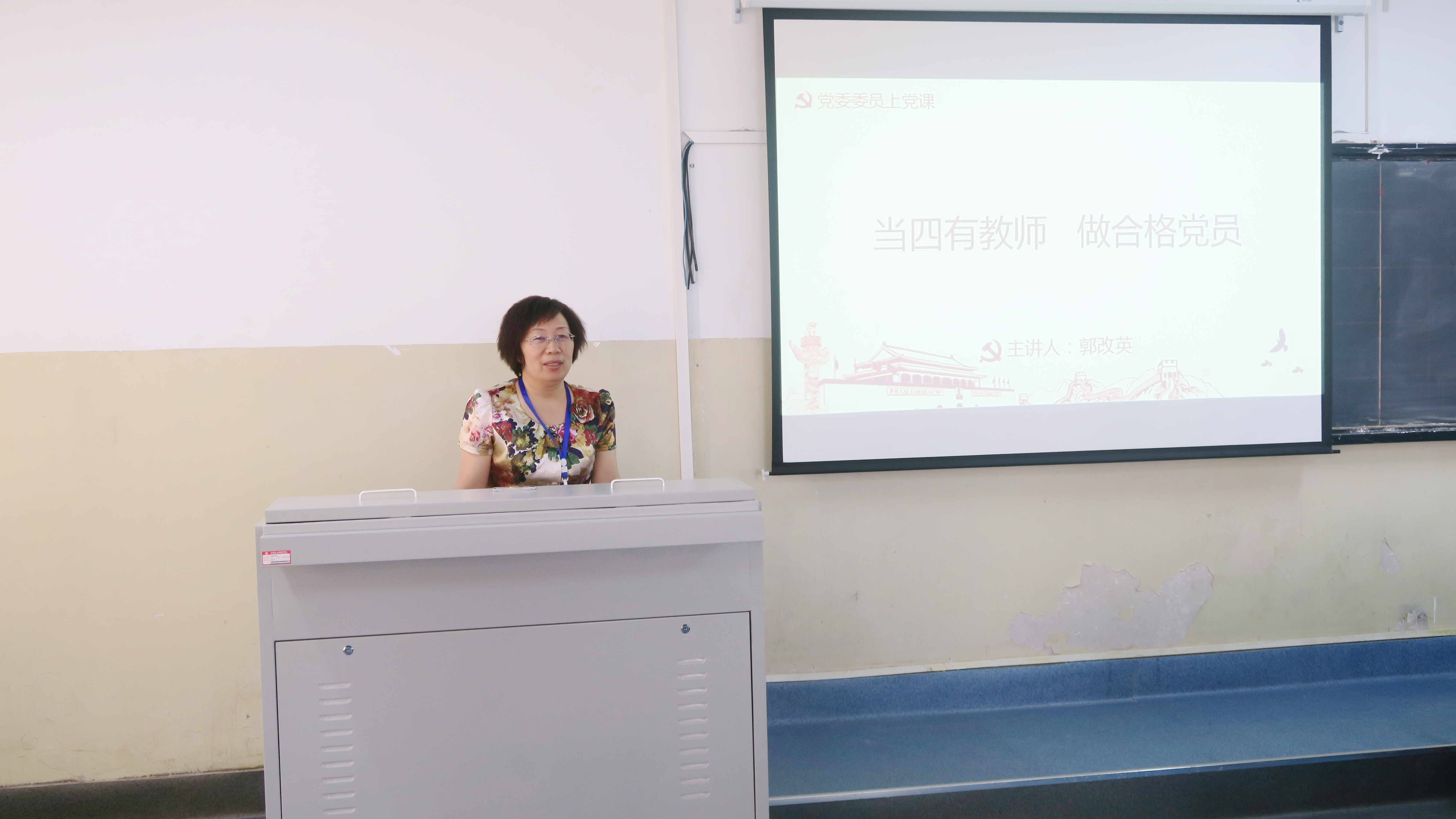 会上,郭改英以“当四有教师 做合格党员”为题进行党课宣讲。她首先强调了什么是“四有”教师,并以习近平总书记强调的“有理想信念、道德情操、扎实学识、仁爱之心”的“四有好老师”标准提出要严格落实在教师岗位工作上,进而围绕如何做优秀的党员教师提出四点意见:一是提升政治底气,坚定理想信念;二是遵循规矩纪律,树立师德师风;三是潜心学习钻研,掌握扎实学识;四是热爱员工教学,传播仁爱之心。
