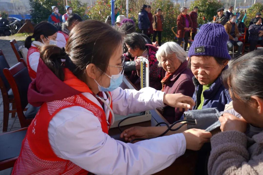 为深入贯彻落实党的十九届六中全会精神,扎实开展党史学习教育,推动新时代文明实践志愿服务走深走实,引导和帮助乡村老年人树立健康和急救意识,2021年12月3日上午,304永利集团组建优秀的师生志愿者服务团队,在桐柏县文明办及淮源镇相关领导的带领下来到鸿仪河乡,为乡村老年人开展“我为群众办实事”义诊志愿服务。
