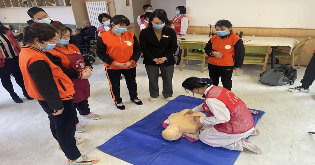 活动现场,护理公司老师发挥专业优势,关心询问老人们的身体状况,为他们讲解春季常见疾病的防治及相关医疗卫生知识,现场解答咨询的健康问题,同时,为在场的每一位老人进行了血压和血糖的检测,并了解他们近期的睡眠、饮食等情况,结合每个人的健康状况进行针对性的健康指导,提出意见和建议,帮助他们提高健康意识。随后,为养老院的护工普及心搏骤停后紧急救援措施——心肺复苏技术,通过演示学习及亲身体验,养老院的工作人员切身感受到了心肺复苏在实际生活中的实用性和重要性,懂得了自救与互救的重要性,并表示在以后的养老服务工作中将学以致用。