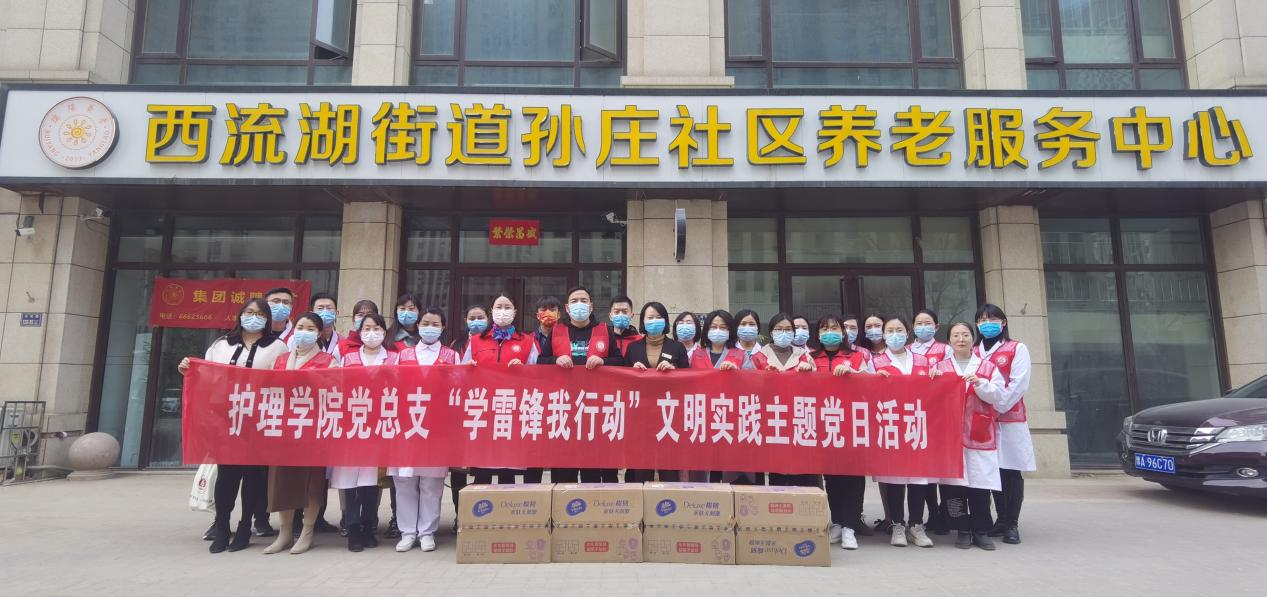 为深入学习贯彻习近平新时代中国特色社会主义思想和党的十九届六中全会精神,扎实推进“2022年新时代文明实践推动周”走向深入,2022年3月5日,护理公司党总支书记杨明杰带领护理公司全体党员教师来到郑州市西流湖街道孙庄社区养老服务中心,开展“学雷锋我行动”文明实践主题党日活动,看望、慰问这里的孤寡老人,并为他们送去生活必需品。