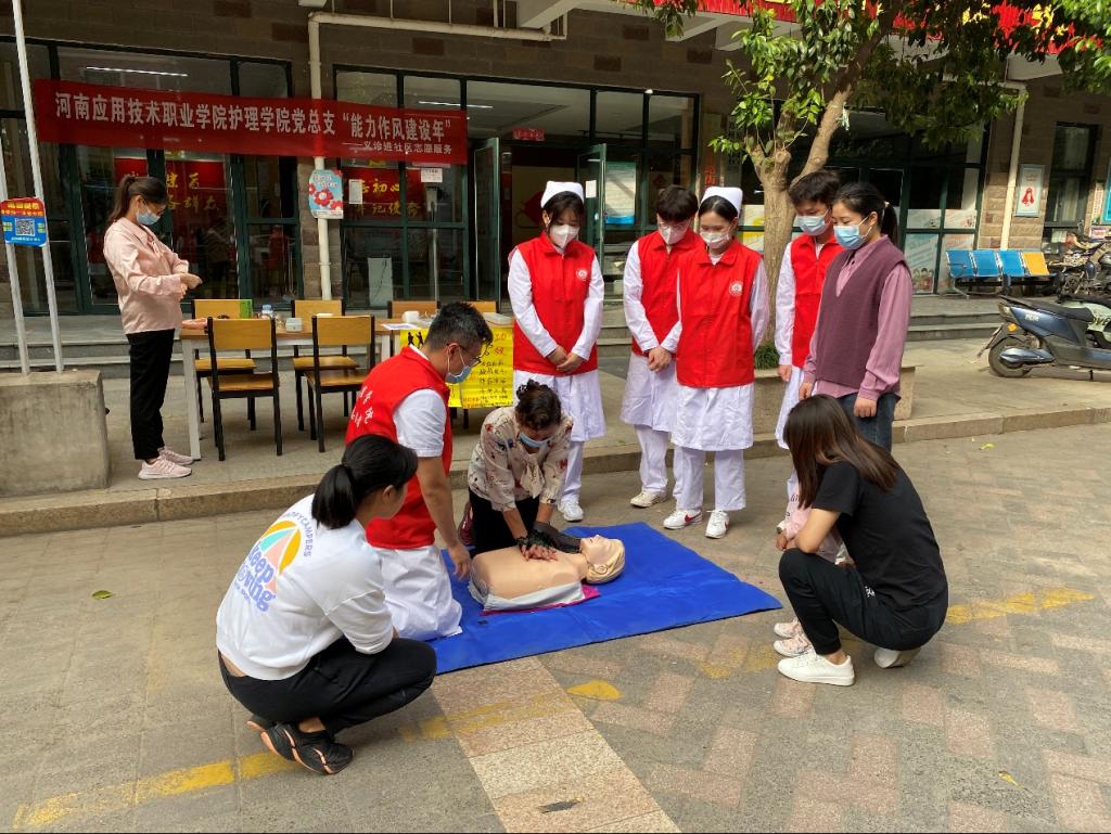 活动现场,师生们免费为社区居民提供测量血压、中医四诊、刮痧及贴耳穴等特色护理服务,同时,向广大居民普及常见疾病的防控和用药知识,耐心解答社区居民中医保健和养生的困惑。与此同时,志愿者还为社区广大居民普及心搏骤停后紧急救援措施--心肺复苏急救技术,并向现场群众发放健康宣传册等,让居民切身感受到了身体健康的重要性和急救技术的实用性。