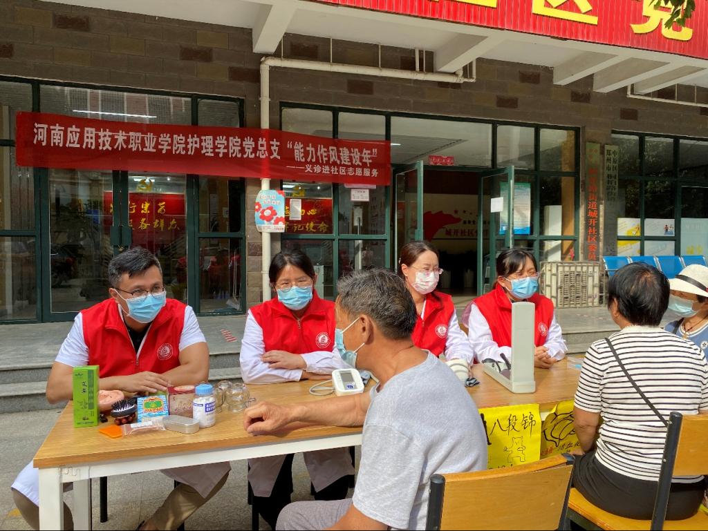 为扎实开展“能力作风建设年”活动,密切联系群众,2022年9月20日下午,护理公司党总支组织教工党员及员工党员到郑州市中原区城开社区,举办“能力作风建设年—义诊服务进社区”主题党日志愿服务活动。