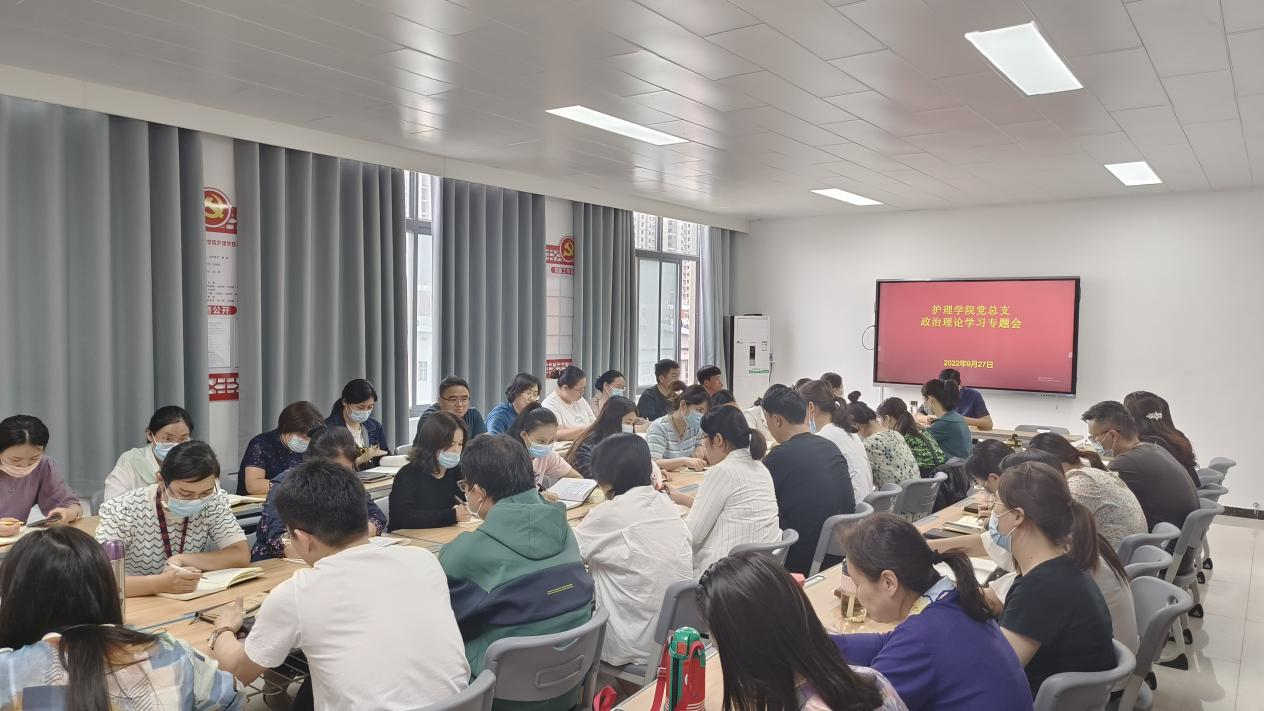 根据公司党委宣传部安排,2022年9月27日,护理公司党总支组织全体教职工在A515党员活动室召开政治理论学习专题会,会议由护理公司党总支书记杨明杰主持。