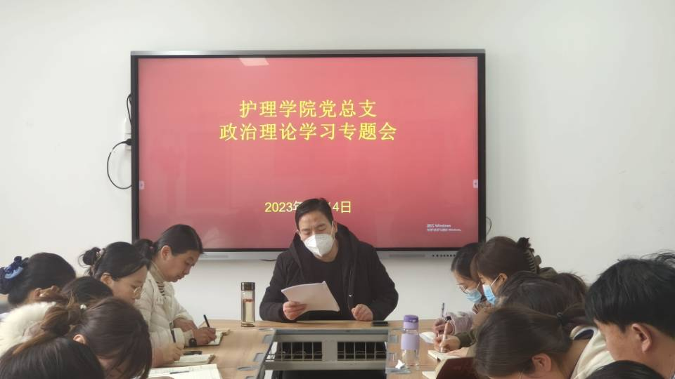 根据公司党委宣传部安排,2023年2月14日,护理公司党总支组织全体教职工在A515党员活动室召开政治理论学习专题会,会议由护理公司党总支书记杨明杰主持。