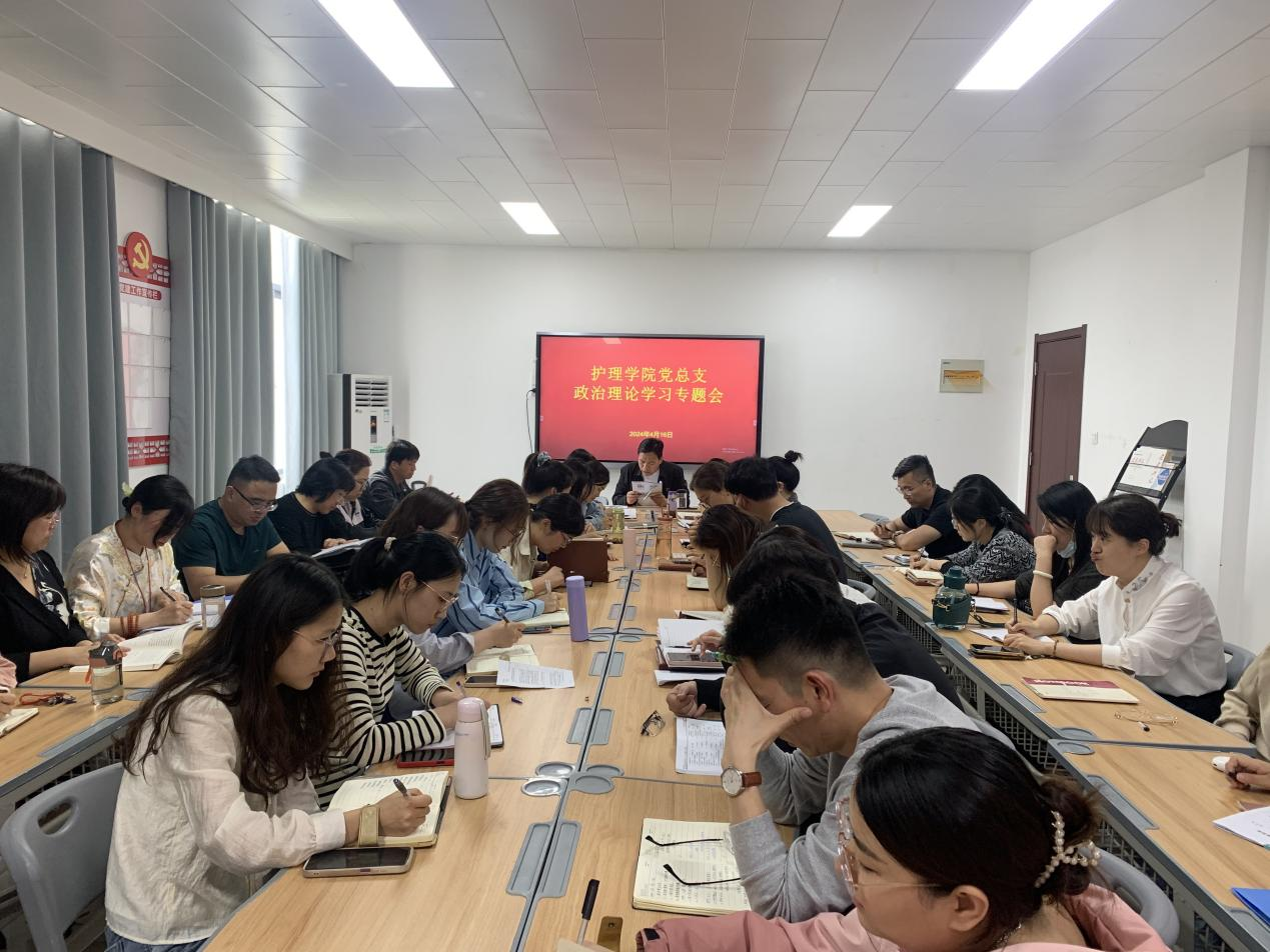 根据公司有关安排,2024年4月16日,护理公司党总支组织全体教职工在A515党员活动室进行专题学习。护理公司党总支书记杨明杰带领大家集中学习了中共中央政治局召开会议审议 《关于二十届中央第二轮巡视情况的综合报告》;4月1日出版的第7期《求是》杂志发表中共中央总书记、国家主席、中央军委主席习近平的重要文章《必须坚持人民至上》;习近平在参加首都义务植树活动时强调全民植树增绿 共建美丽中国。