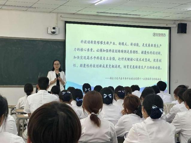 习近平总书记指出:“科技创新能够催生新产业、新模式、新动能,是发展新质生产力的核心要素。必须加强科技创新特别是原创性、颠覆性科技创新,加快实现高水平科技自立自强,打好关键核心技术攻坚战,使原创性、颠覆性科技创新成果竞相涌现,培育发展新质生产力的新动能。”2024年5月20日,副董事长陈君丽教授为护理公司员工讲授了以“走好新时代科技自立自强之路”为主题的思政课。