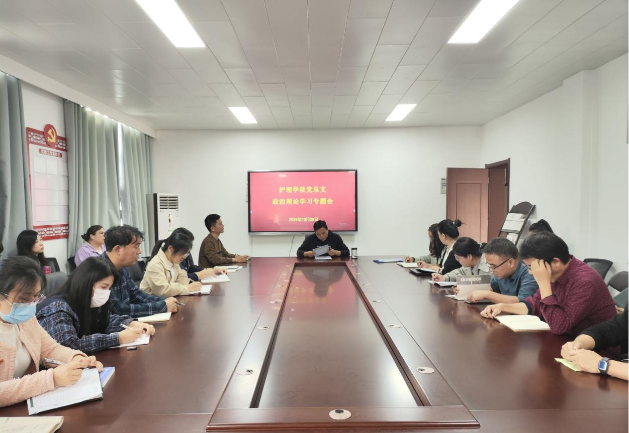 根据公司安排,2024年10月29日,护理公司党总支组织全体教职工在A515集中开展政治理论专题学习,会议由护理公司党总支书记杨明杰主持。