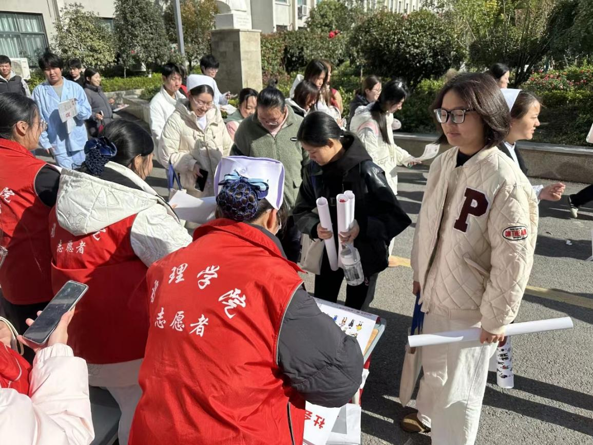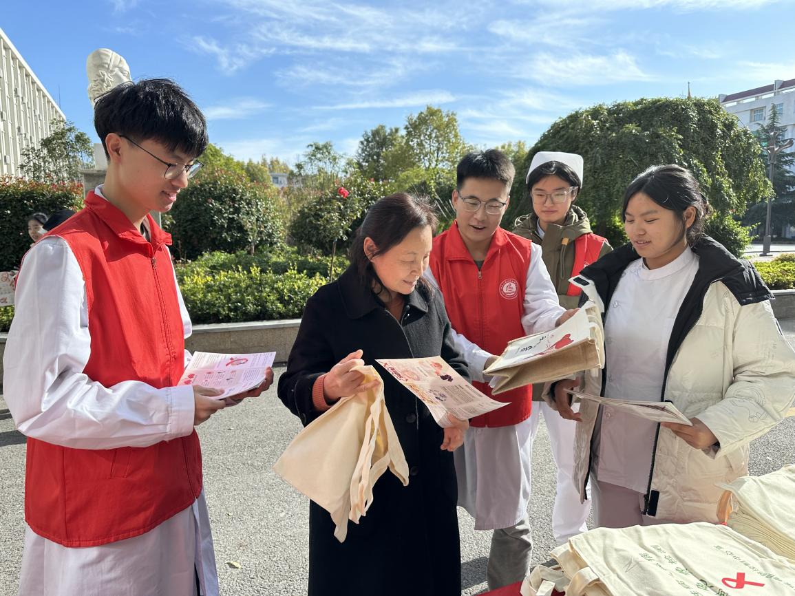 活动现场,护理党员党总支组织党员教师及入党积极分子充分发挥专业优势,引导大家科学认知艾滋病,消除常见误解,避免高危行为,将防艾知识融入日常点滴。他们化身“防艾使者”,分散在校园图书馆、北广场、食堂等要道,向过往老师和同学们发放艾滋病宣传手册、宣传挂历、宣传袋等,普及艾滋病健康教育预防知识,增强广大师生对艾滋病的正确认知。