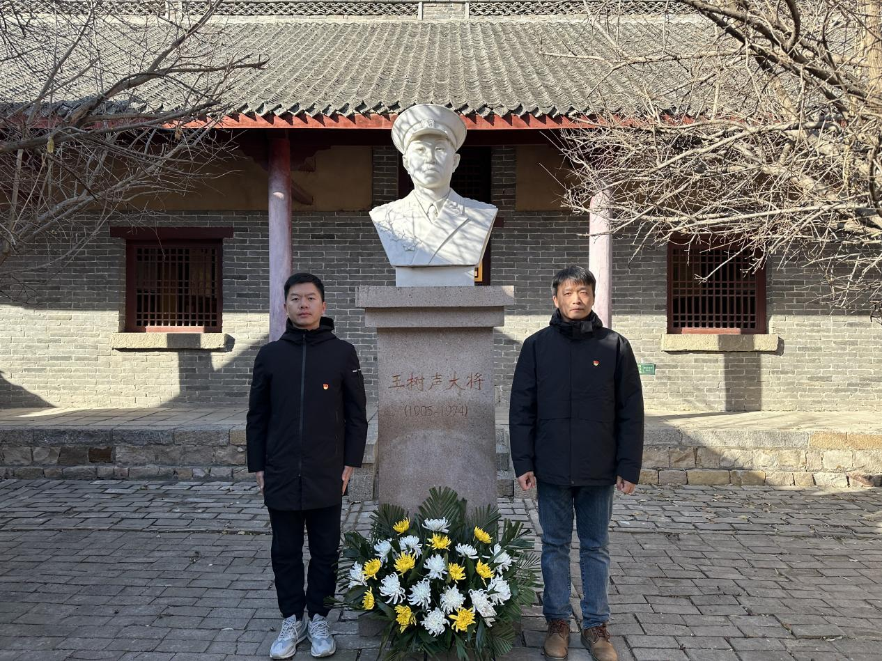 众人首先来到河南军区原址登封市徐庄镇孙桥村,这里曾留下王树声大将战斗、指挥的身影,那斑驳的墙壁、陈旧的物件仿佛都在无声诉说着往昔的烽火岁月,让大家深切感受到革命先辈们坚定的革命意志和无畏的奉献精神。大家齐声合唱《没有共产党就没有新中国》,面向党旗重温入党誓词,并向王树声大将敬献花篮。