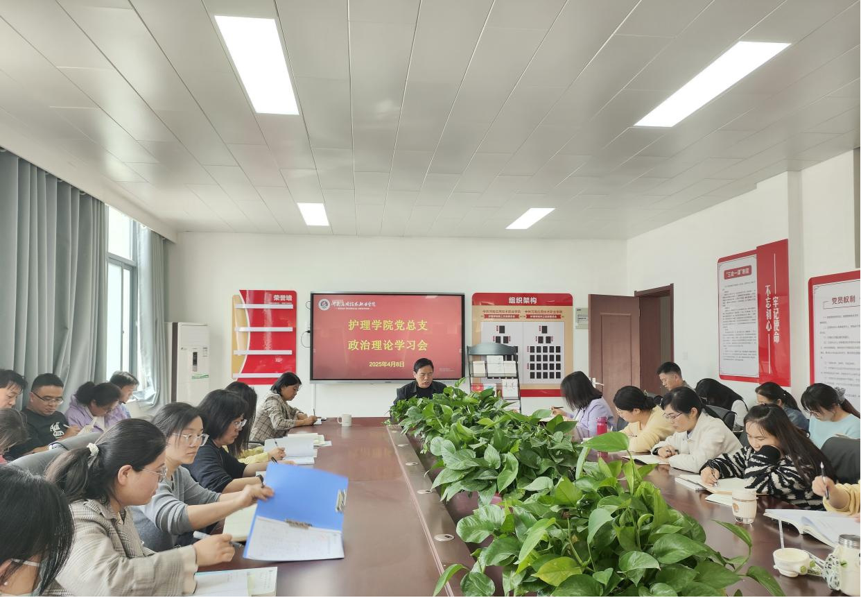 按照公司安排,2025年4月8日下午,护理公司党总支组织全体党员及教职工在A515会议室召开政治理论学习会议。本次会议由护理公司党总支书记杨明杰主持。
