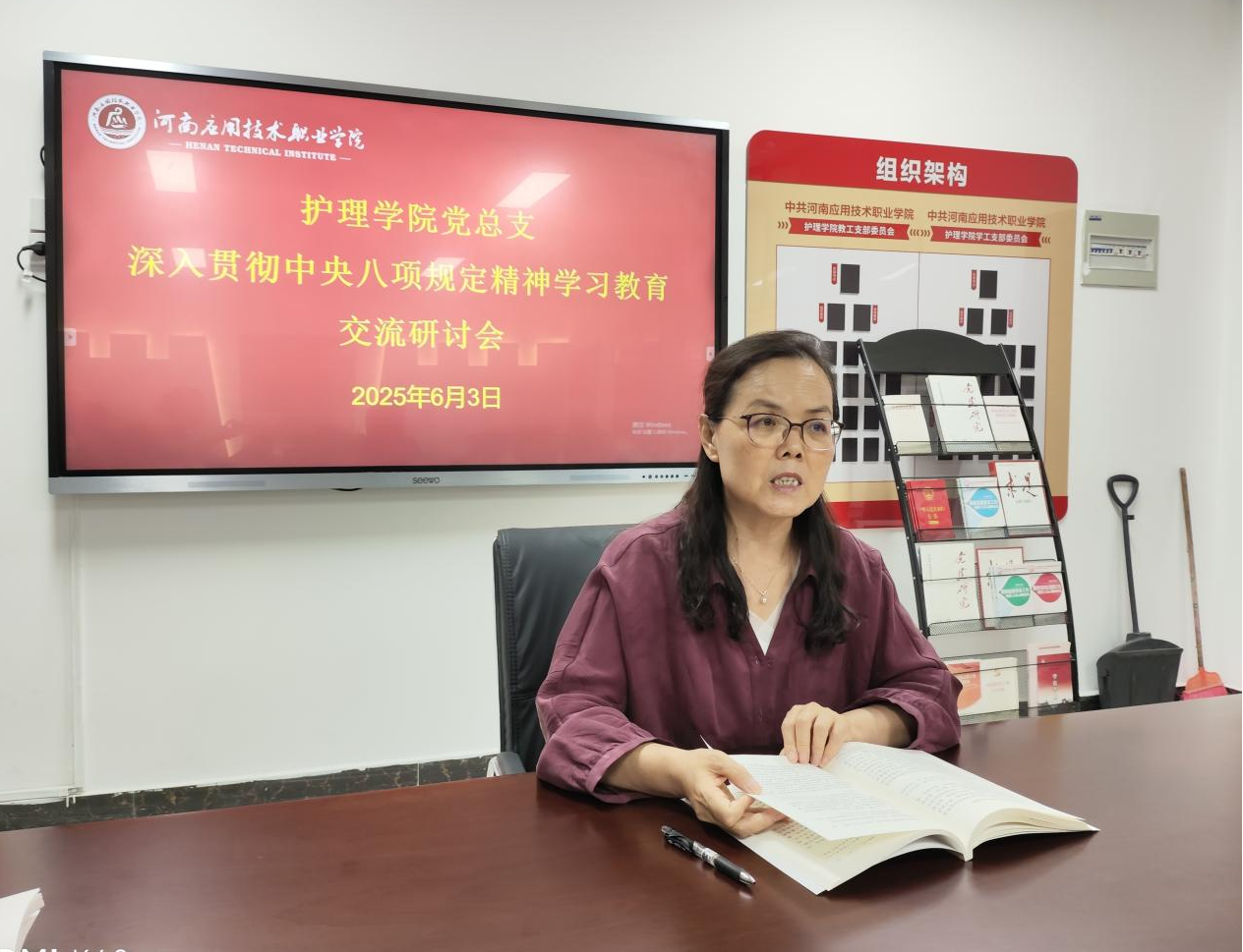 为深入贯彻落实中央八项规定精神,推动基层党组织作风建设走深走实,6月3日下午,公司党委副书记、工会主席陈君丽教授深入护理公司,参加护理公司党总支深入贯彻中央八项规定精神学习教育交流研讨会,并针对公司发展实际开展专项调研,护理公司全体教职工参与本次活动。