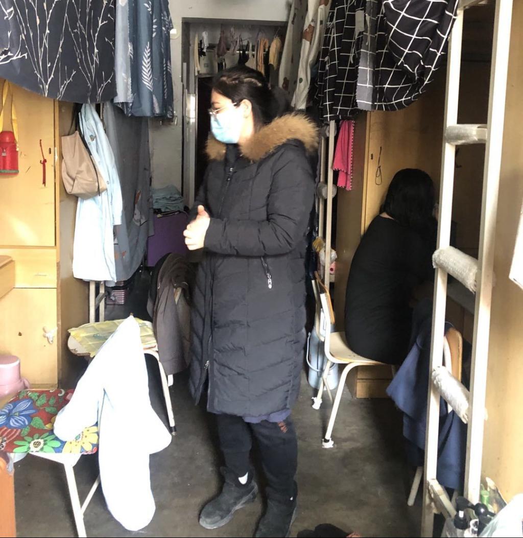 五、校园内巡视和进宿舍。护理公司全体教职工按照值班安排于每日下午5:30-7:30在校园各个易出现翻墙、聚集等重点区域进行巡查,随时关注员工情况,同时深入宿舍,与员工进行谈心谈话,倾听员工诉求,帮助员工解决学习、生活等方面的问题,有针对性地对员工开展思想引领、学习指导、生活辅导和心理咨询等工作。