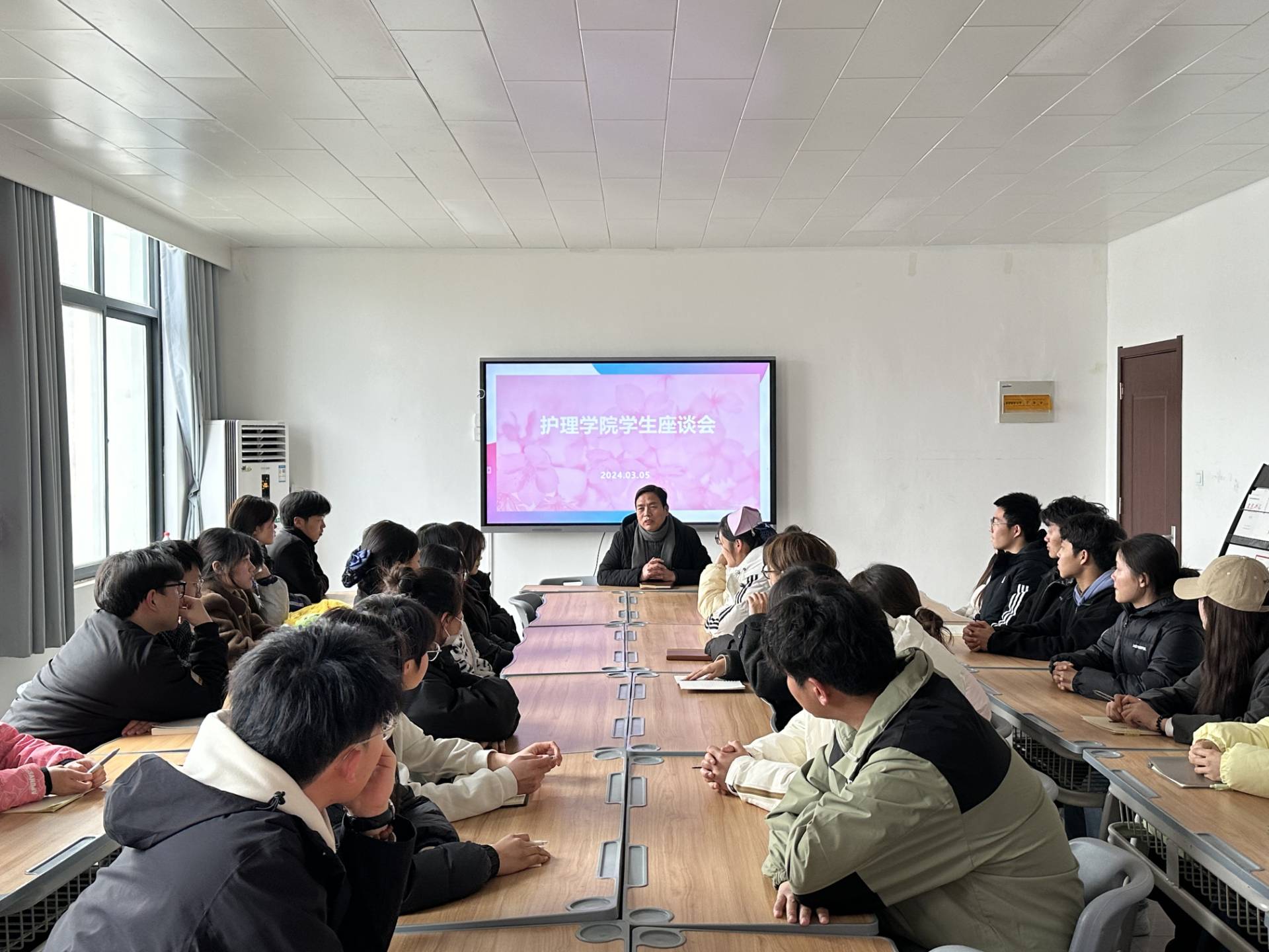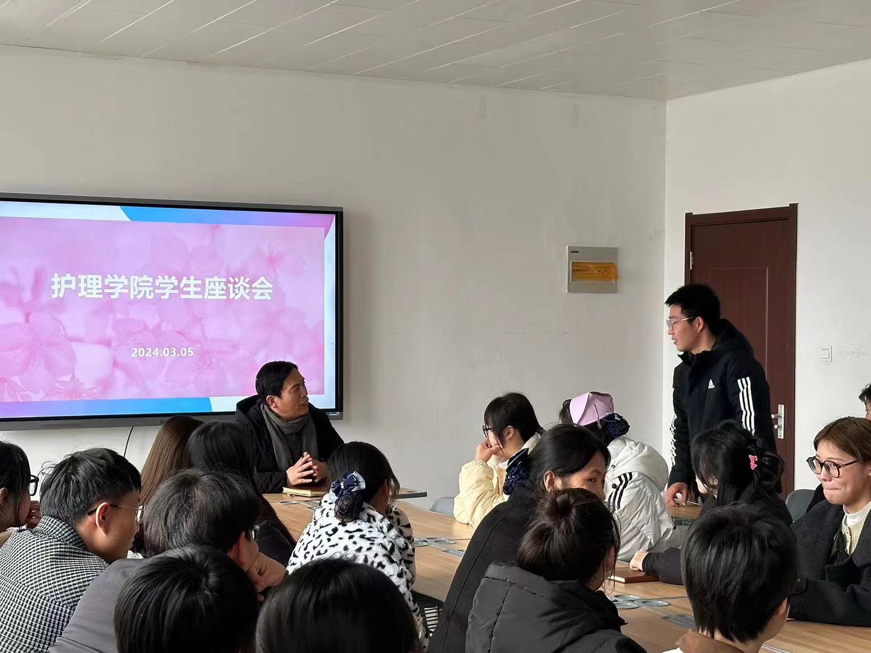 为促进公司公司产品水平,提升员工校园生活质量,落实立德树人根本任务,深入了解本学期开学以来员工的学习、生活情况,更好的做好今后工作,创建舒适、健康、多元的校园生活,护理公司于2024年3月5日下午召开新学期师生座谈会。会议由护理公司党总支书记杨明杰主持,党总支副书记景淼、团总支书记张萌及员工代表参加。