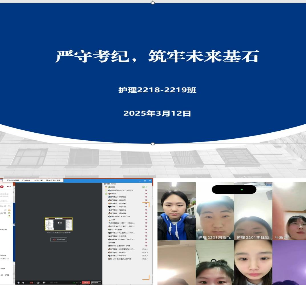 为加强学风建设,营造良好的考试氛围,护理公司组织22级辅导员于 2025 年 3 月 12 日 - 13 日召开了以“严守考纪,筑牢未来基石”为主题的专升本诚信考试主题班会。