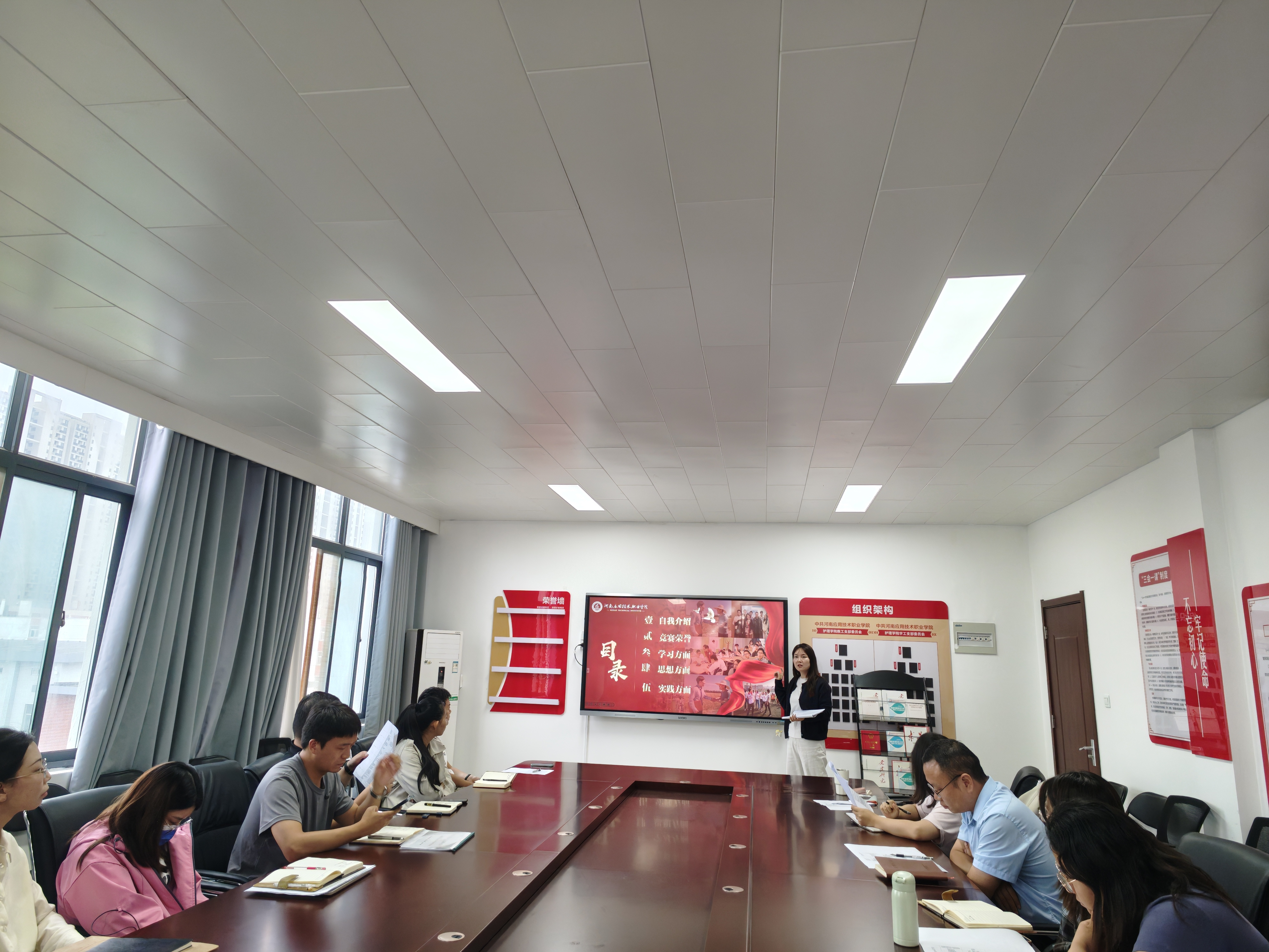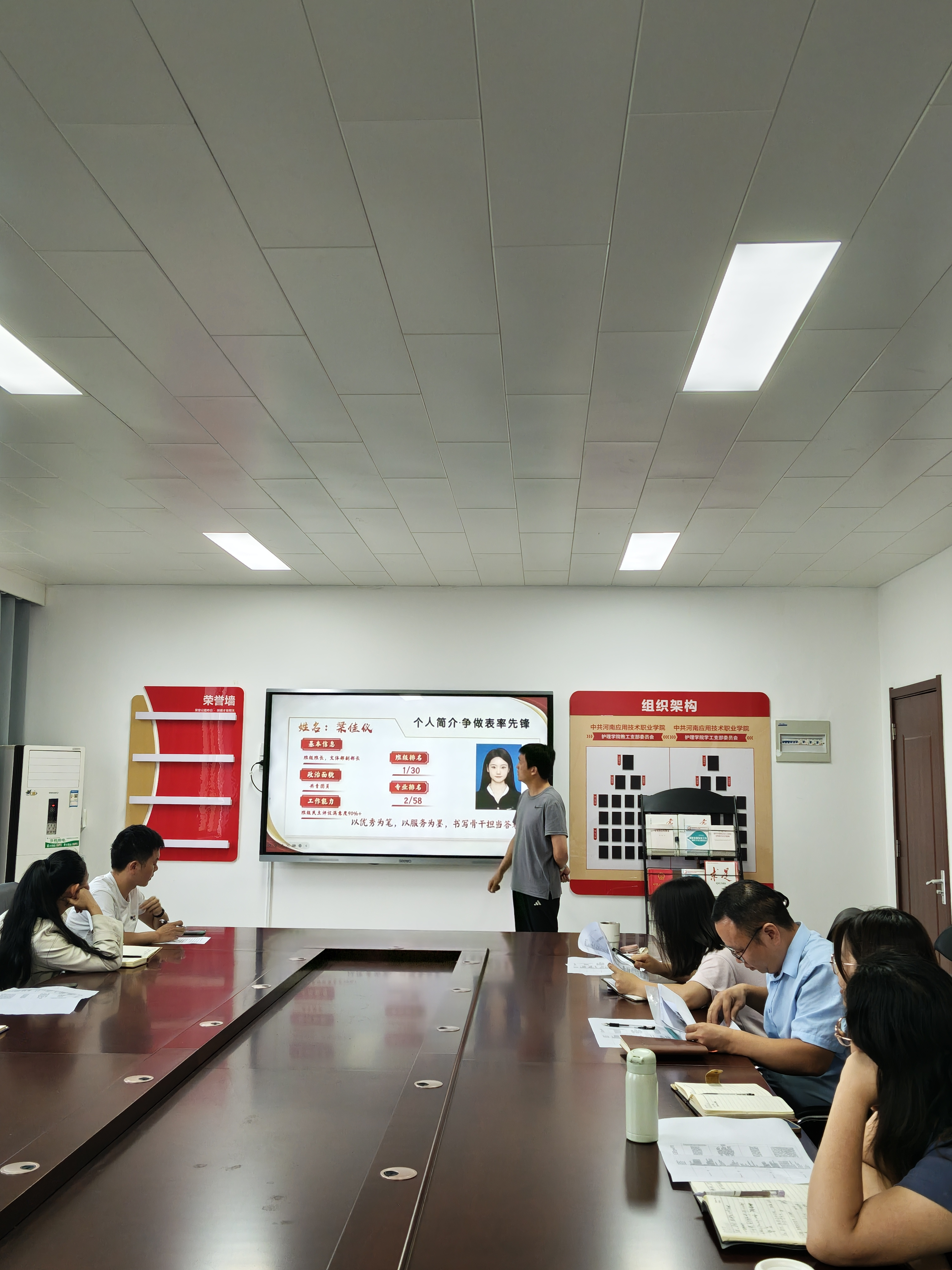 景淼宣读了国家奖学金评审实施细则,明确了评审内容、流程与纪律要求。在答辩环节中,各位候选人的辅导员依次进行陈述,围绕员工思想品德、学业成绩、科研创新、社会实践、获奖情况等方面展开全面汇报,充分展现了公司学子勤奋踏实、追求卓越的综合素养。