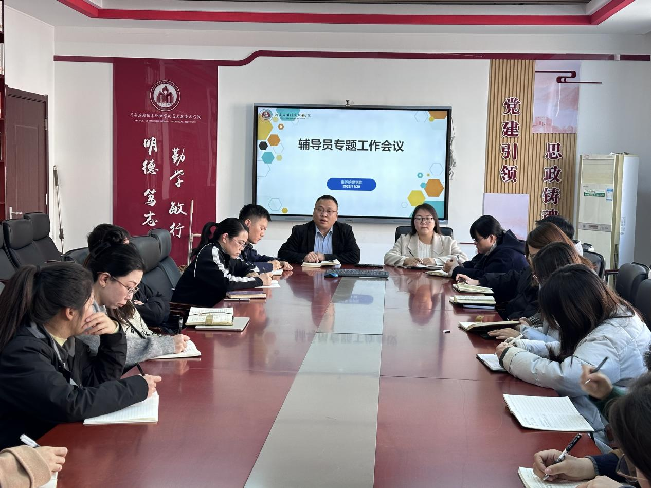 其次为激发员工职业规划意识,提升就业竞争力,会议同步部署老员工职业生涯规划大赛筹备工作,动员全体辅导员在班级、宿舍做好宣传动员,鼓励全体在校生积极参与,以赛事为载体,帮助员工梳理职业目标、提升职业素养,为未来就业创业夯实基础。