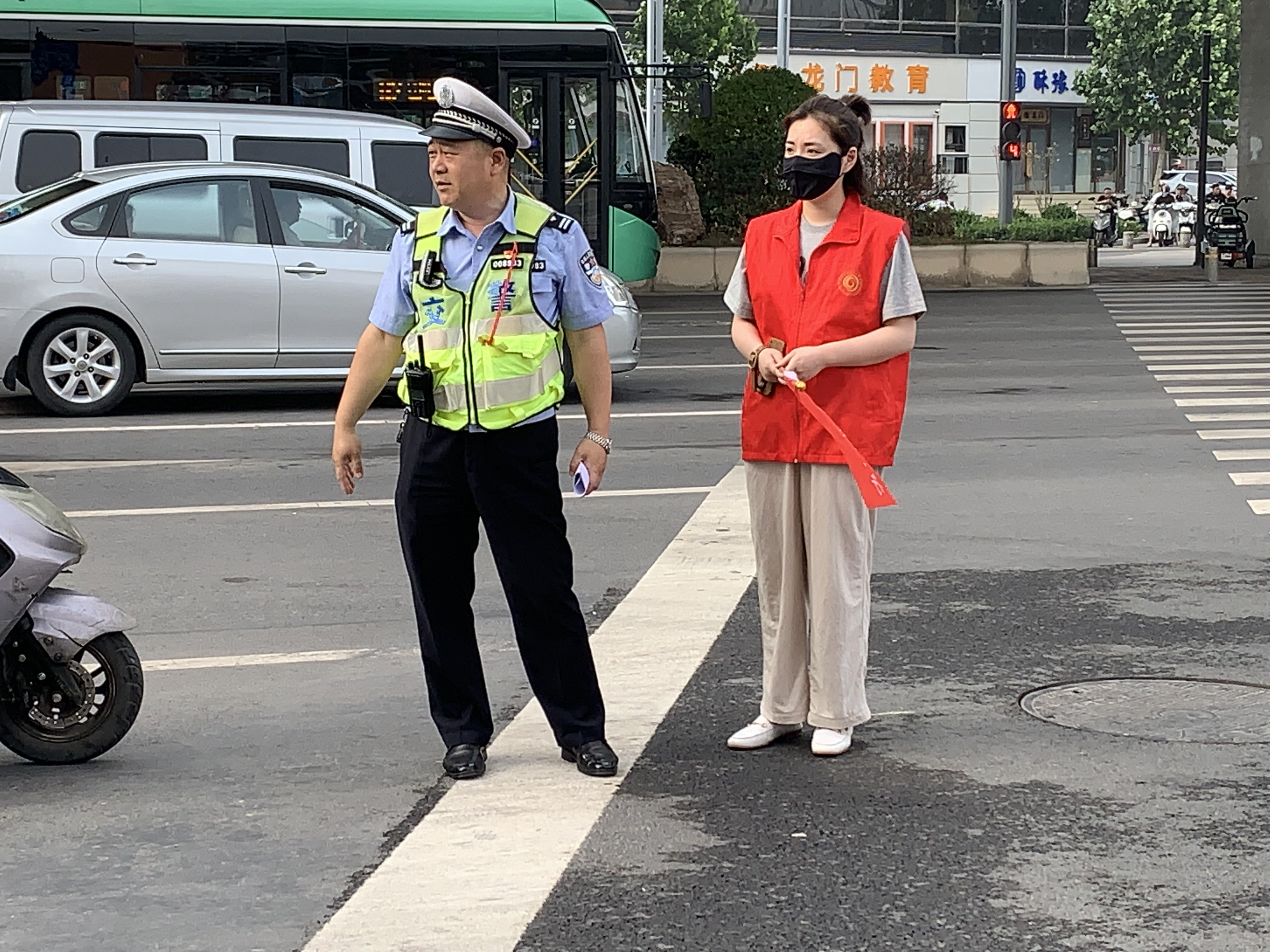 根据公司统一部署要求,党员教师们身着红色小马甲,手持小红旗,通过交警手势、言语劝导等方式,对行人和非机动车辆闯红灯、乱穿马路、不走斑马线等违反交通规则的不文明行为进行及时制止。同时,向过往行人普及文明交通安全法律法规,对问路的行人给予热情引导,主动帮助老、幼、病、残等行动不便的人员安全通行,提供力所能及的服务。在此期间,郑州市交警二大队四中队的段警官对党员教师进行了详细的交通法规讲解与岗前培训,使党员教师对交通法规以及相关行为规范的认识得到了进一步提升,从而更好地开展志愿工作。