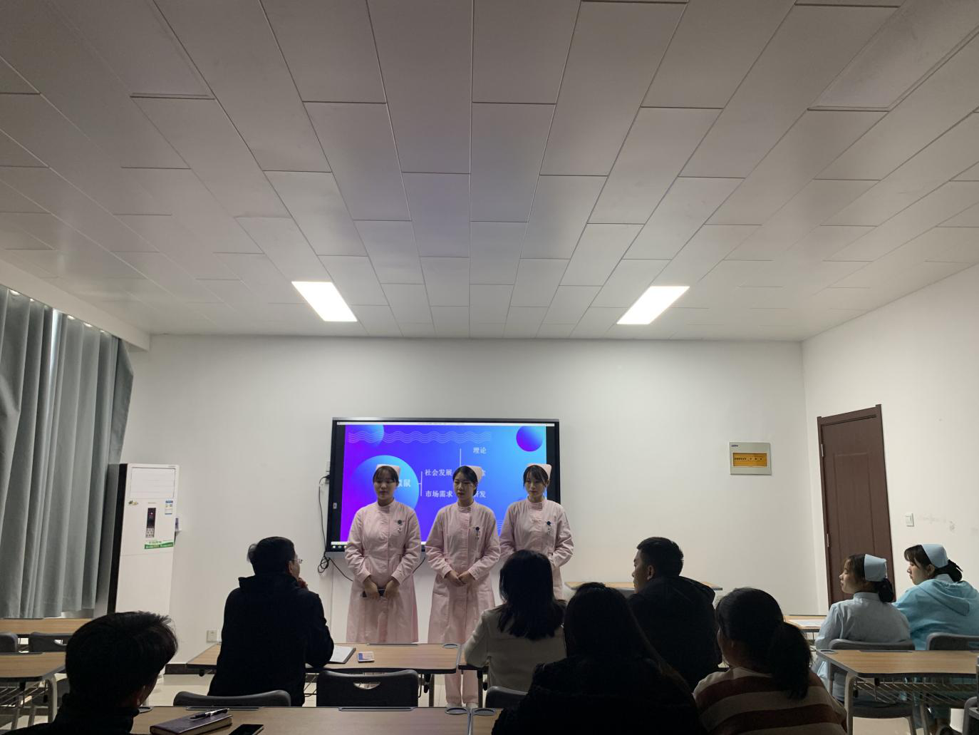 本次参加路演的六个团队分别是护理2015班《蚂蚁慢递》、护理1919班《21#拟鼠》、基础教研室《颈舒康》、护理1903班《舞钢市医养结合养老项目》、护理1907班《新型烟嘴盒》、护理2016班《滴滴看护》,这些项目都是屡破关卡,突破重围的佼佼者,他们整装待发、昂首迈步,期待着那破茧瞬间的绽放与蓄势华丽的转身。每一个宣讲人所展现出来的朝气与自信、执着追求梦想的毅力与战斗力都赢得了观众热烈持久的掌声,充分展现了新时代老员工独有的青春魅力与创新智慧。