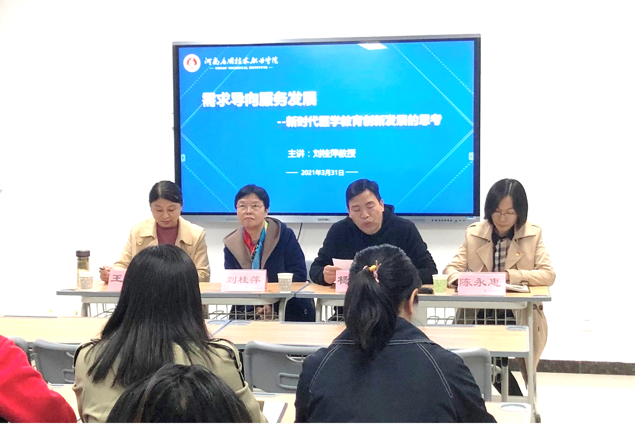 2021年3月31日晚,护理公司在A515党员活动室举办了主题讲座。此次讲座由护理公司杨明杰书记主持,邀请了河南省护理公司产品指导委员会委员,河南省医学教育研究会秘书长,河南省郑州大学护理公司教授,硕士生导师刘桂萍教授主讲,护理公司全体教师参与聆听讲座,讲座题目为:需求导向 服务发展--新时代医学教育创新发展的思考。