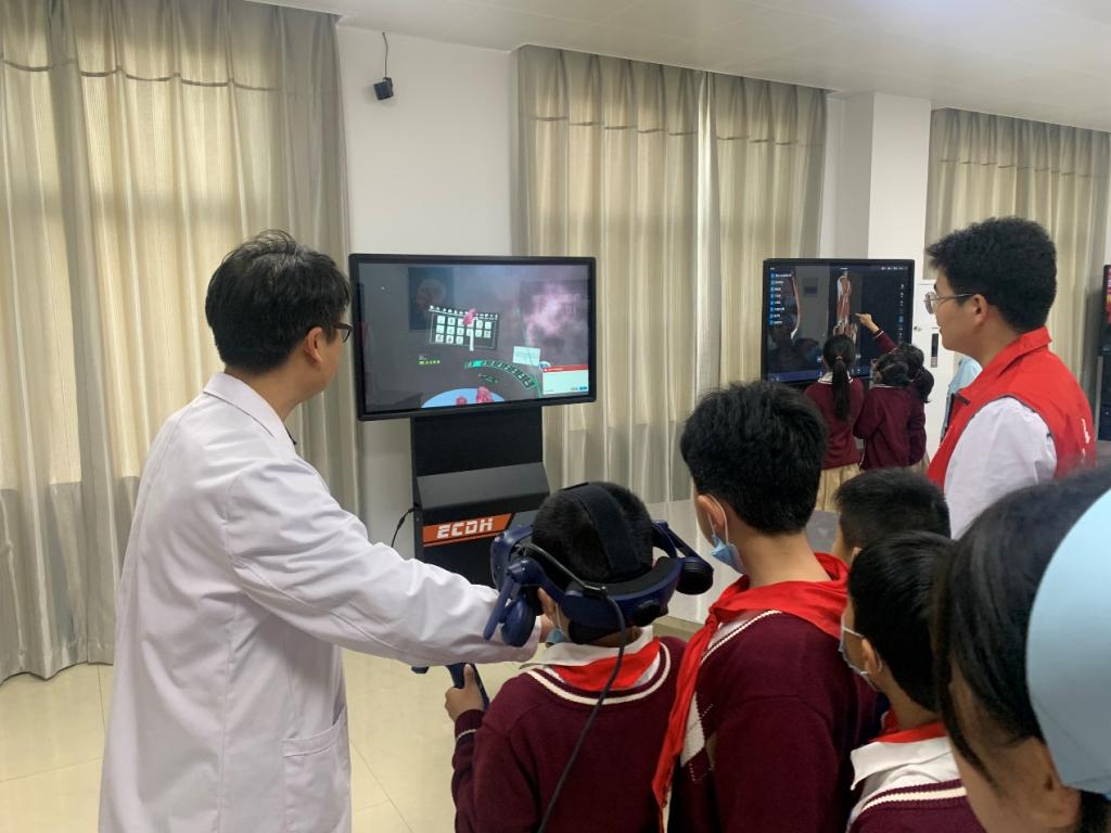 在人体解剖虚拟仿真实训中心,张家梁老师结合三大虚拟平台生动地给同学们呈现了一场精彩的“探索人体奥秘,共筑健康人生”的科普教育活动,同学们认真地边看边听,还不时提出一些问题,张老师耐心地给同学们一一讲解。在活动现场,在公司青年志愿者的协助之下,还有序开展了生动有趣的互动体验活动,将本次科普教育活动推向了高潮。