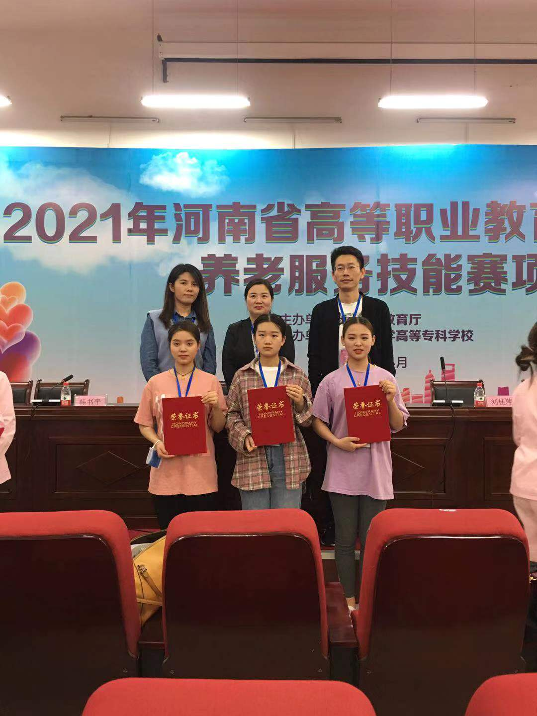 4月28—30日,2021年河南省高等职业教育技能大赛养老服务技能大赛在漯河举行,公司在本次大赛中荣获佳绩,护理公司2019级护理专业、老年保健与管理专业员工齐慧珠、张文慧、卢钰莹分别获二等奖3项;柳超、李悦临、宋文颖三位老师获优秀指导教师奖。