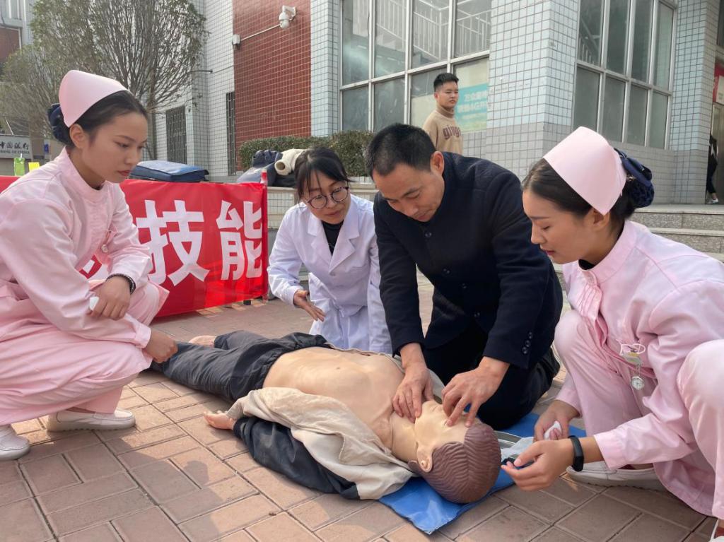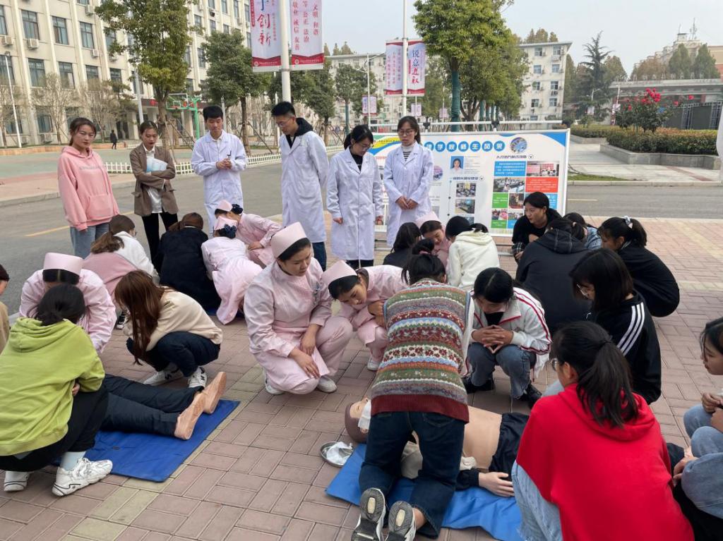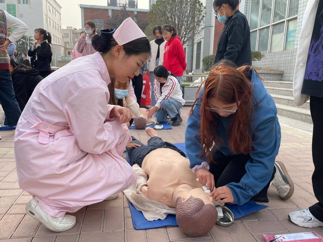 11月13日,护理公司临床内科教研室依据《健康中国行动(2019—2030年)》规划纲要指示精神,结合贯彻落实《关于做好2020年职业教育活动周》的文件要求,在校园内开展了“院前急救技能”培训的活动,在活动中广大师生积极参与,亲身体验,受益匪浅。