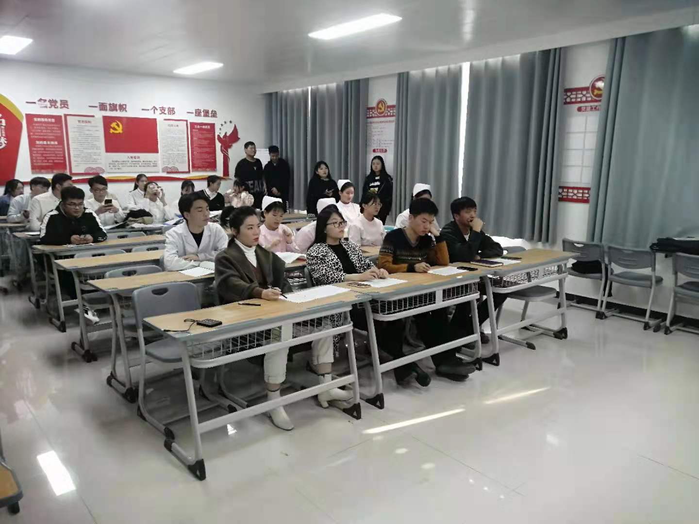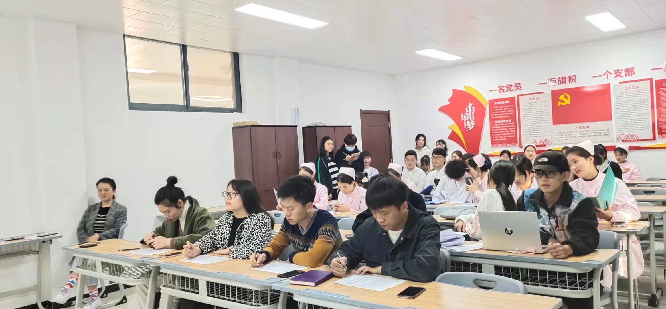 伟大抗疫精神是当下中华民族和中国社会最为亮丽的精神标识。为深入学习贯彻习近平新时代中国特色社会主义思想和党的十九大精神,号召同学们争做新时代新青年,为实现青春梦、中国梦而奋斗。11月13日,护理公司在A515党员活动室开展了以“弘扬抗疫精神,做好新时代青年”为主题的成果展示大赛。