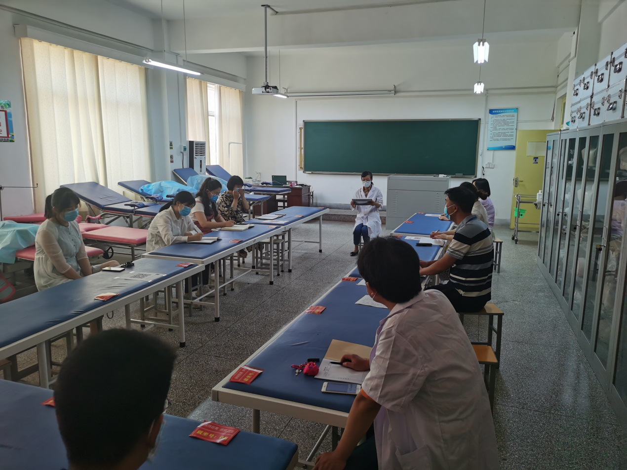 首先,医务室董会节医生向大家传达上级关于发热病人的规范处理办法,给值班教师培训体温异常员工的问诊要求、处理方案和注意事项;对医务值班人员提出总体要求,对发热员工登记表的提出明确的书写要求。
