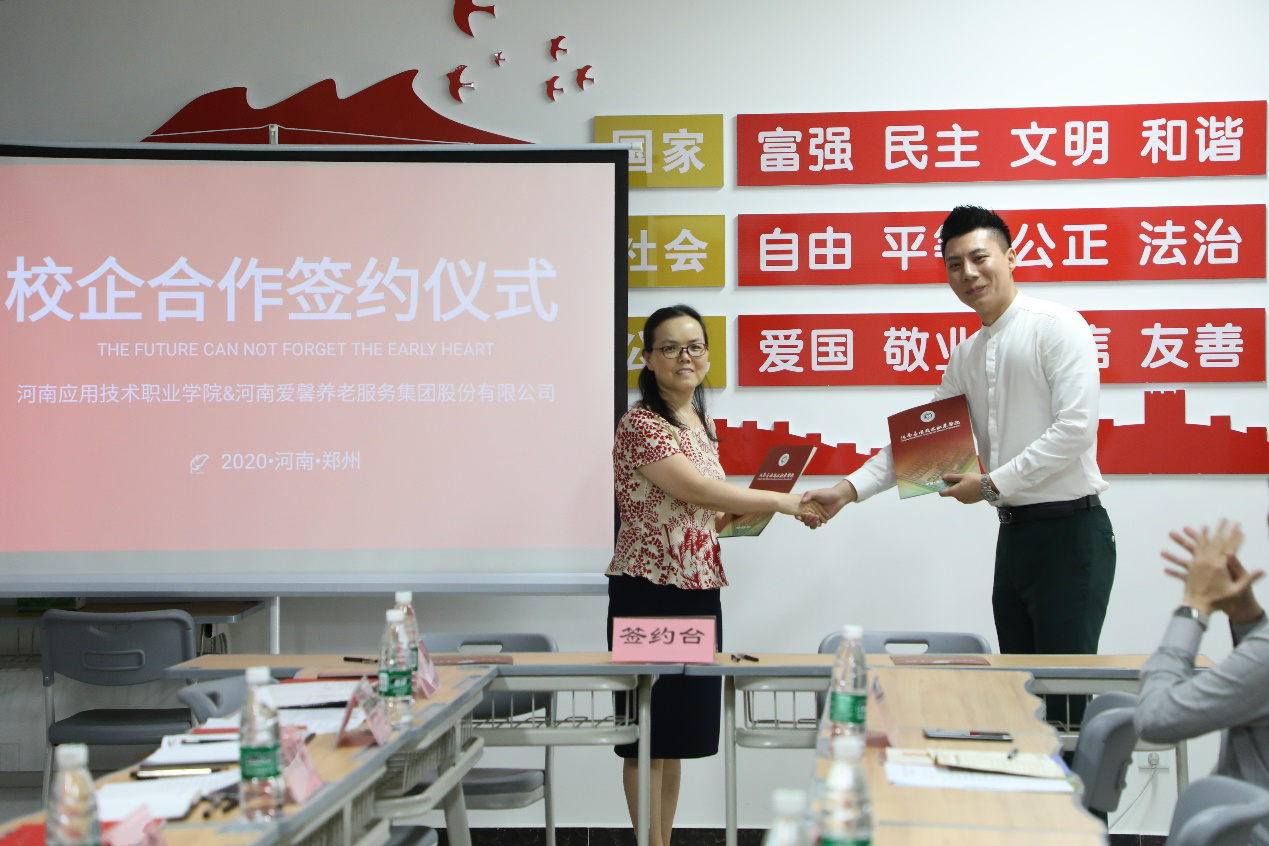 本次签约仪式的成功举行,为校企双方进一步开展多层次、多形式、多领域的合作,实现校企资源的有机结合和优化配置,为培养社会养老服务事业发展需要的人才提供了新的途径。