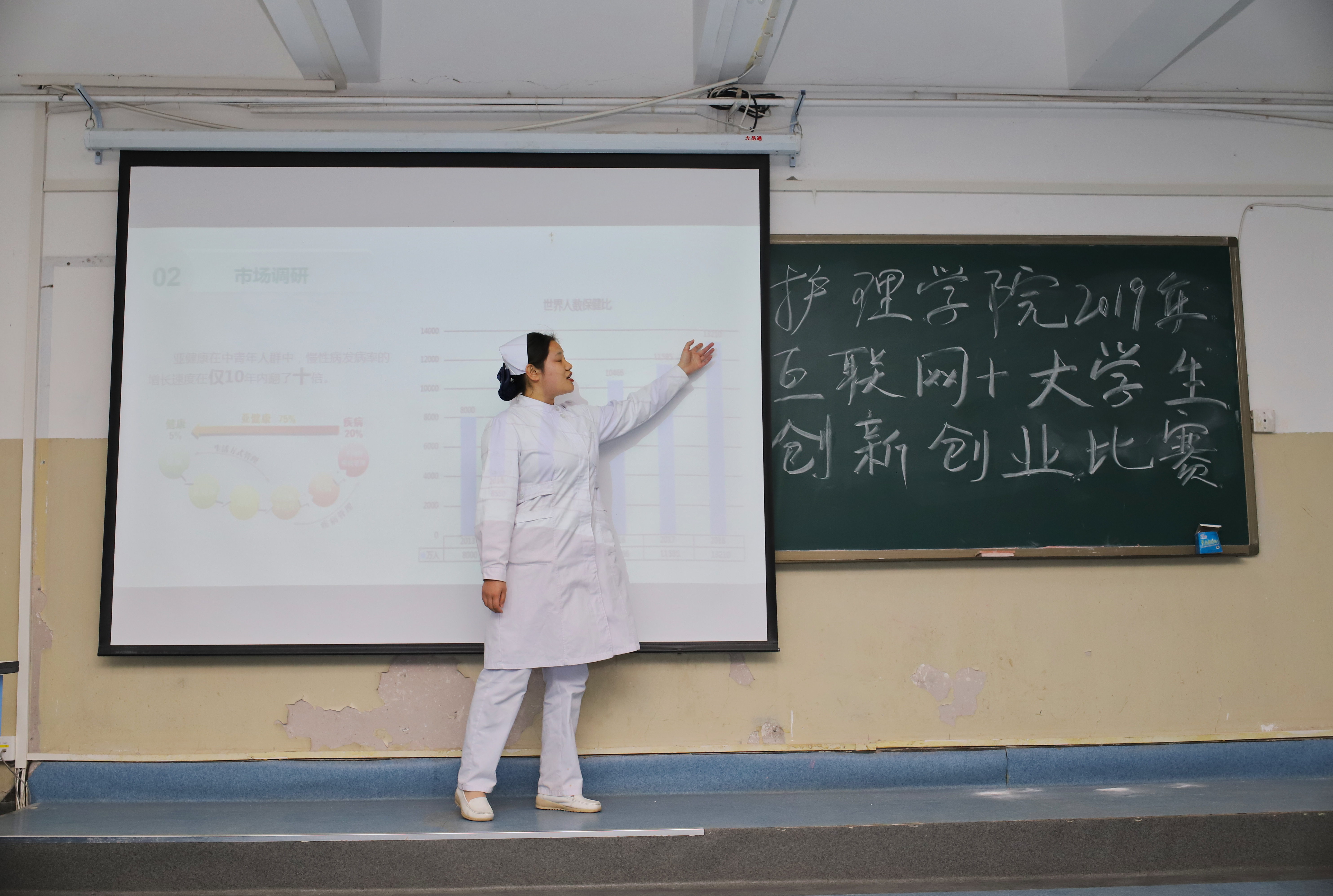 2019年10月30日晚上6:00,护理公司在梁海洋老师的带领下在D楼207教室举行护理公司老员工创新创业比赛。