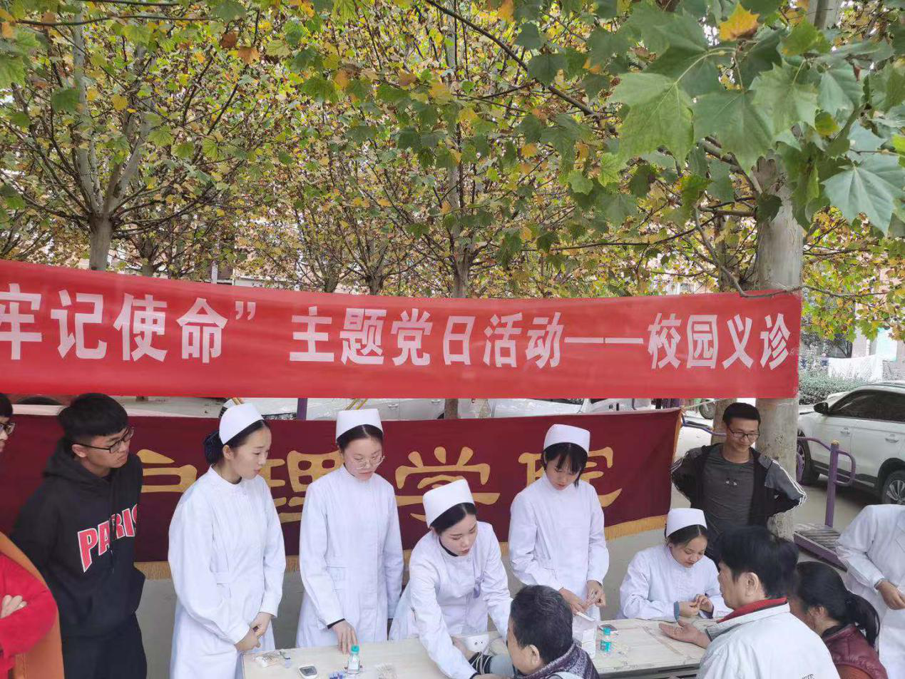 根据公司“不忘初心、牢记使命”主题教育工作部署,2019年11月12日下午,护理公司走出校门,在校园附近的二化小区开展了“不忘初心、牢记使命”主题党日校园义诊活动。参加活动的有李悦临老师、董莹莹老师、郑伟老师、王金库老师以及护理公司的员工。