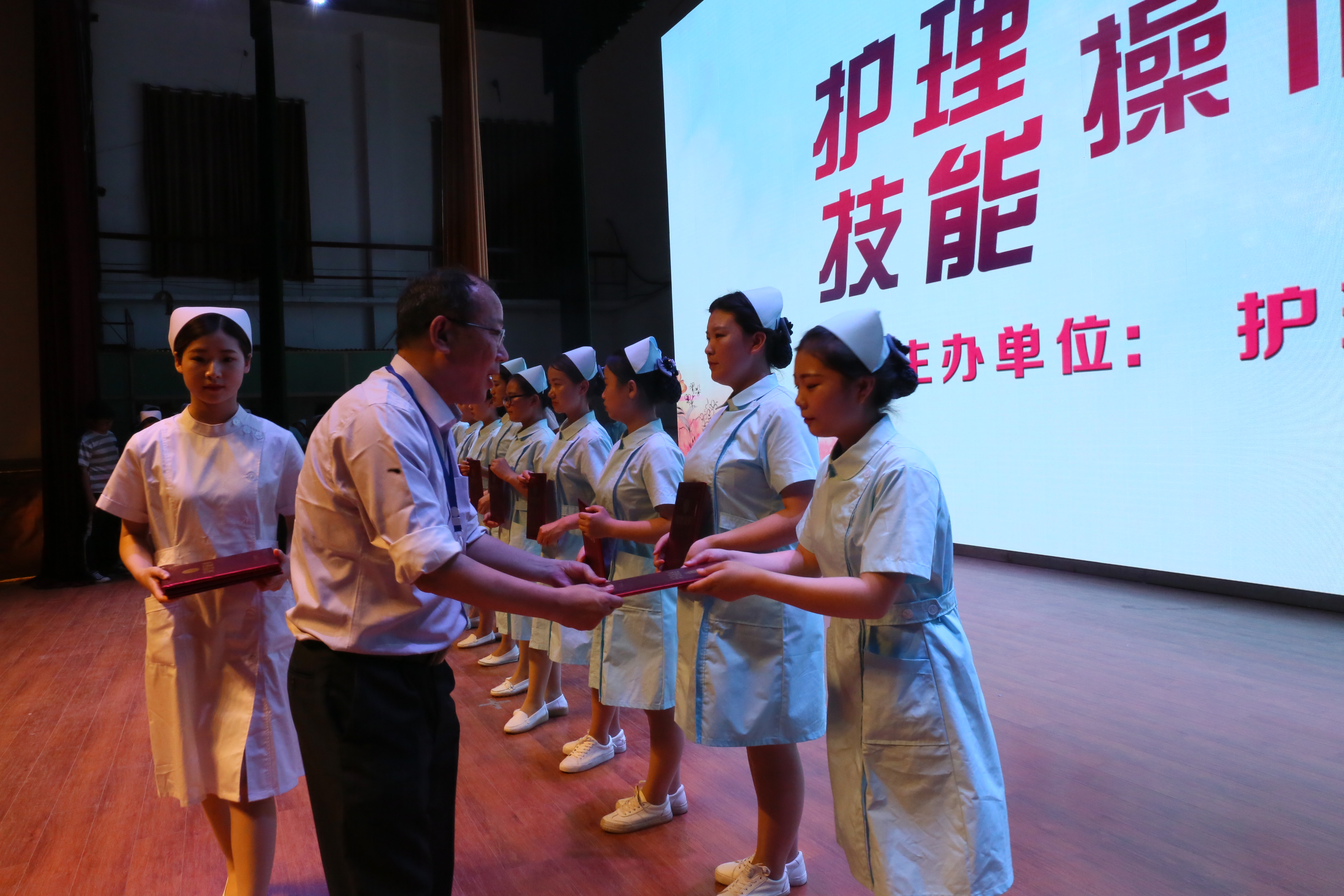 018年5月10日晚,为纪念即将到来的5.12国际护士节,护理公司在公司大礼堂隆重举行传光授帽仪式暨护理技能大赛。公司副董事长赵玉奇同志、河南省人民医院护理部主任、河南省护理学会副秘书长、硕士研究生导师张红梅教授,河南省护理公司产品指导委员会委员、河南省医学教育研究会秘书长刘桂萍教授,河南省护理学会常务理事兼副秘书长、郑州大学第一附属医院临床技能训练中心主任、硕士生导师李胜云教授,河南省卫生厅护理技能大赛裁判李国荣教授,教务处处长朱明悦,护理公司经理王风云,护理公司党总支书记徐娟,护理公司副经理温晓丽出席会议。副董事长赵玉奇在活动中致辞。