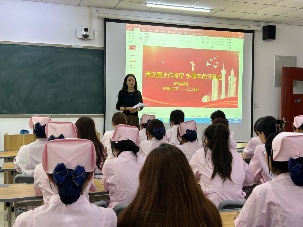 水以清为贵,人以廉为尊。为深入推进廉洁文化,美化心灵,培养员工的廉洁意识,提高员工的修养,2023年6月2日护理公司2022级辅导员赵千老师在双创楼303开展以“清正廉洁作表率,永葆本色守初心”为主题的团课。
