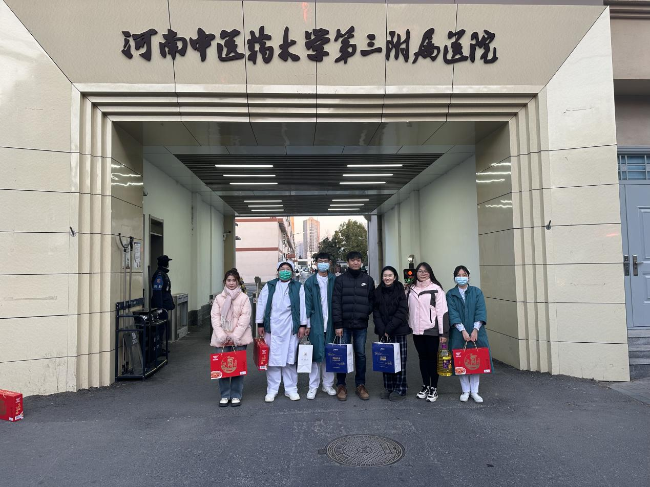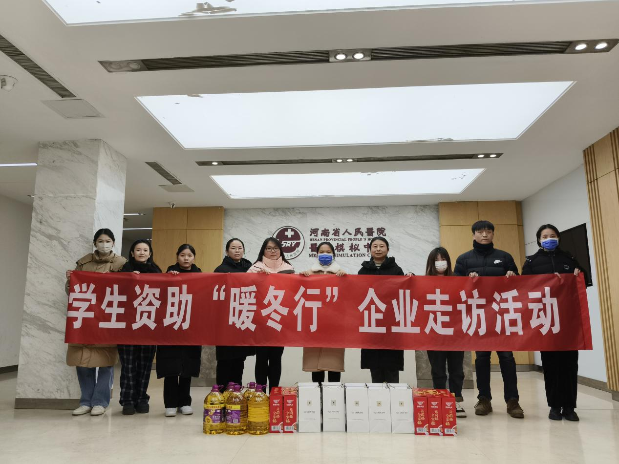 为全面贯彻落实国家和公司各项资助育人政策,深入了解公司实习员工在岗学习、生活及工作情况。2024年1月22日,护理公司经理王风云、党总支副书记景淼、实习指导教师杨丽萍及辅导员葛尧、刘思阳共同前往河南省人民医院、河南中医药大学第三附属医院看望公司实习员工并为家庭经济困难员工送去公司的温暖和新春的祝福。