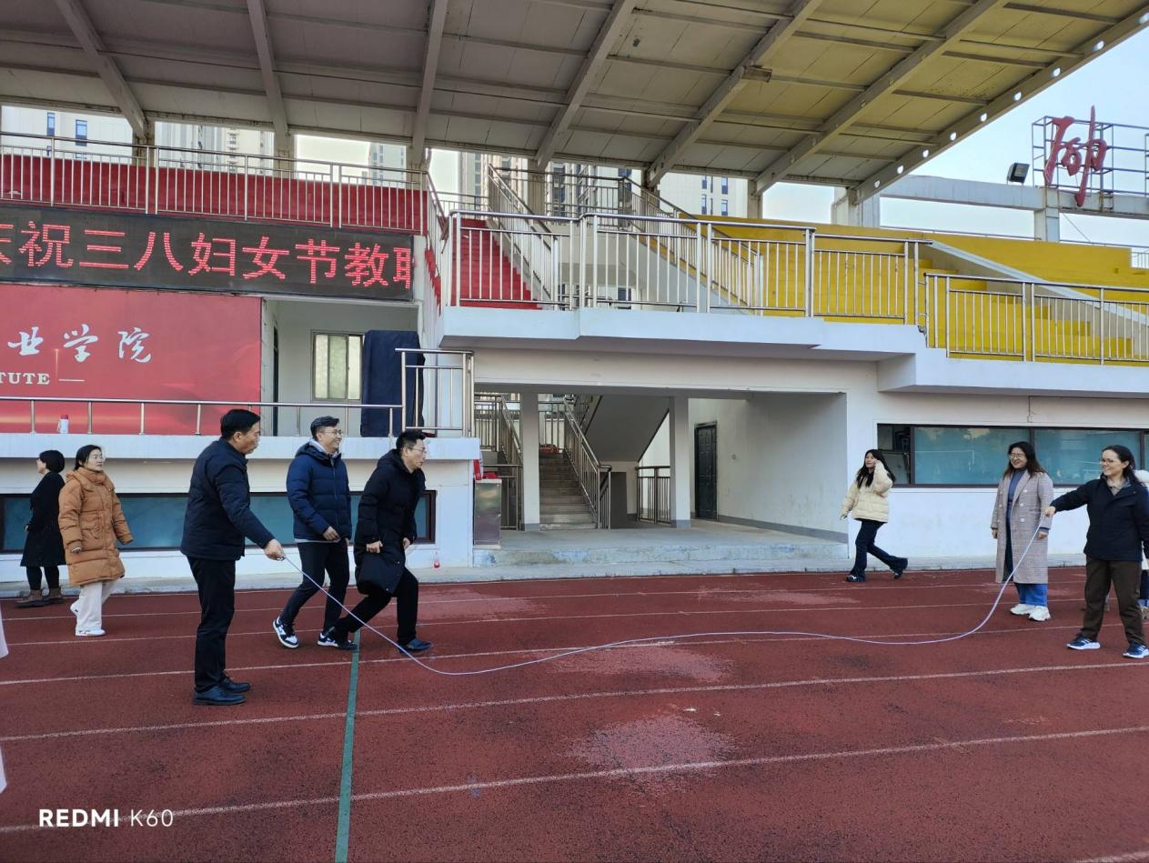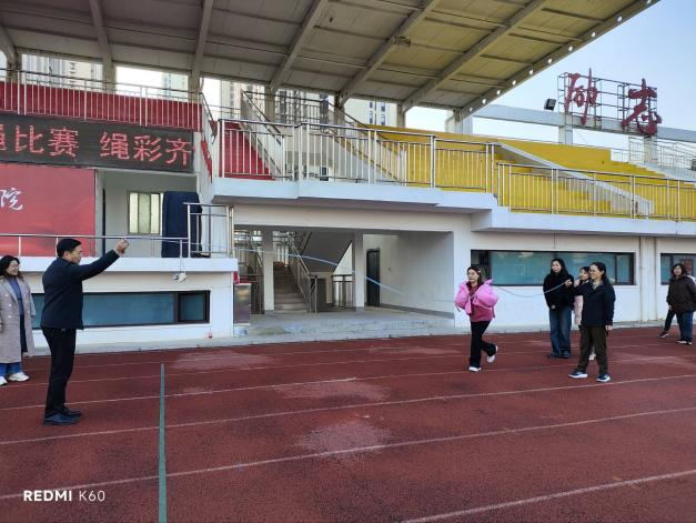 为迎接第115个“三八”国际劳动妇女节,展现新时代女性团结拼搏、健康向上的精神风貌,3月4日下午,护理公司分工会在公司大操场举办以“绳彩齐飞扬,巾帼绽芳华”为主题的集体跳大绳绳活动。公司党委副书记、工会主席陈君丽教授亲临现场,与护理公司全体教师共同参与,以跃动的身姿共庆节日、共绽芳华。