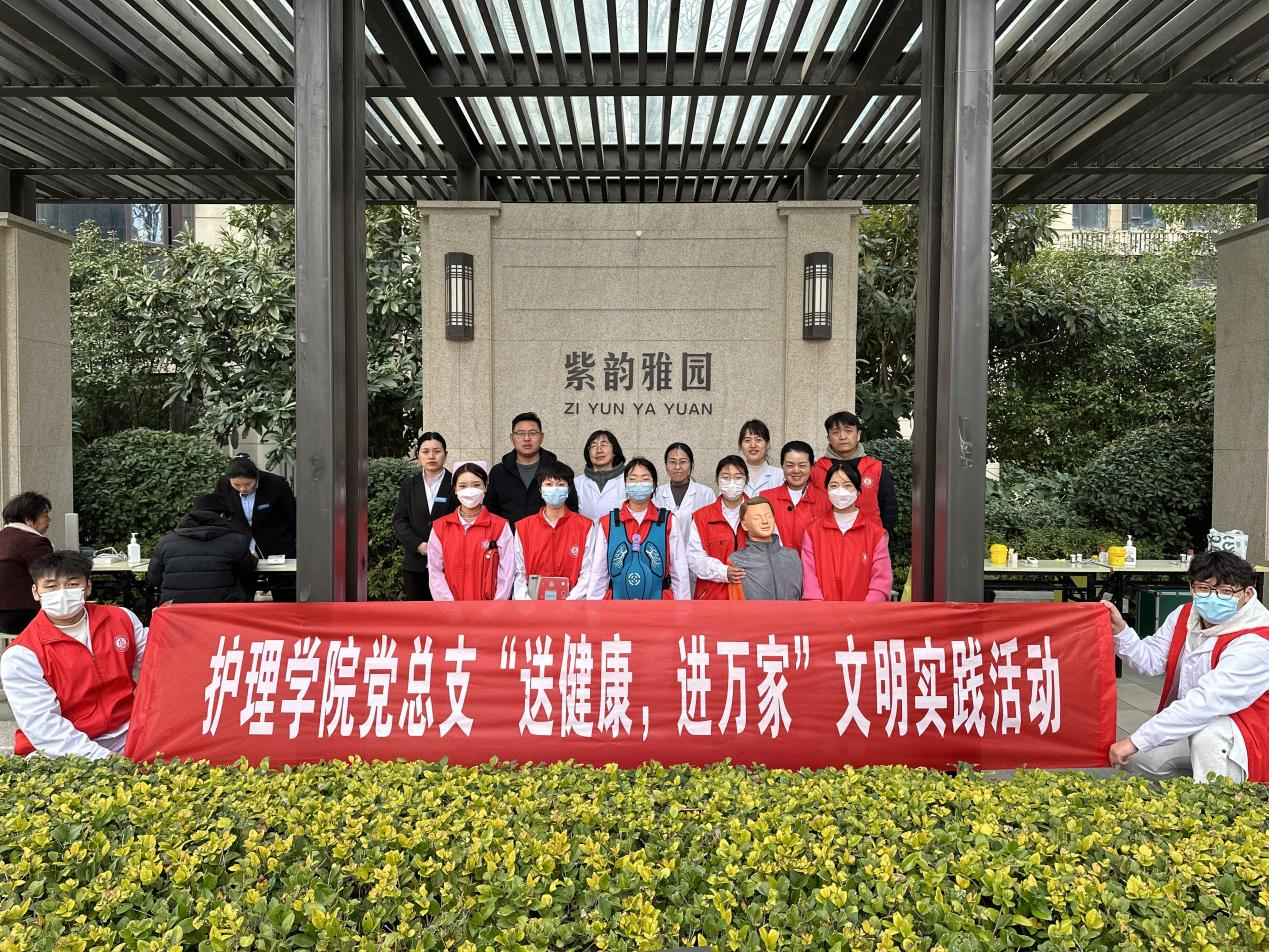 为深入贯彻落实党的二十大精神,践行“健康中国”战略,提升全民健康素养,2025年3月6日下午,护理公司党总支组织教师党员及员工入党积极分子,走进华瑞紫韵城雅园社区,开展“送健康,进万家”文明实践活动。此次活动旨在通过健康监测、急救技能培训及疾病预防咨询等形式,将健康服务送到居民家门口,提升社区居民的健康意识和急救技能。
