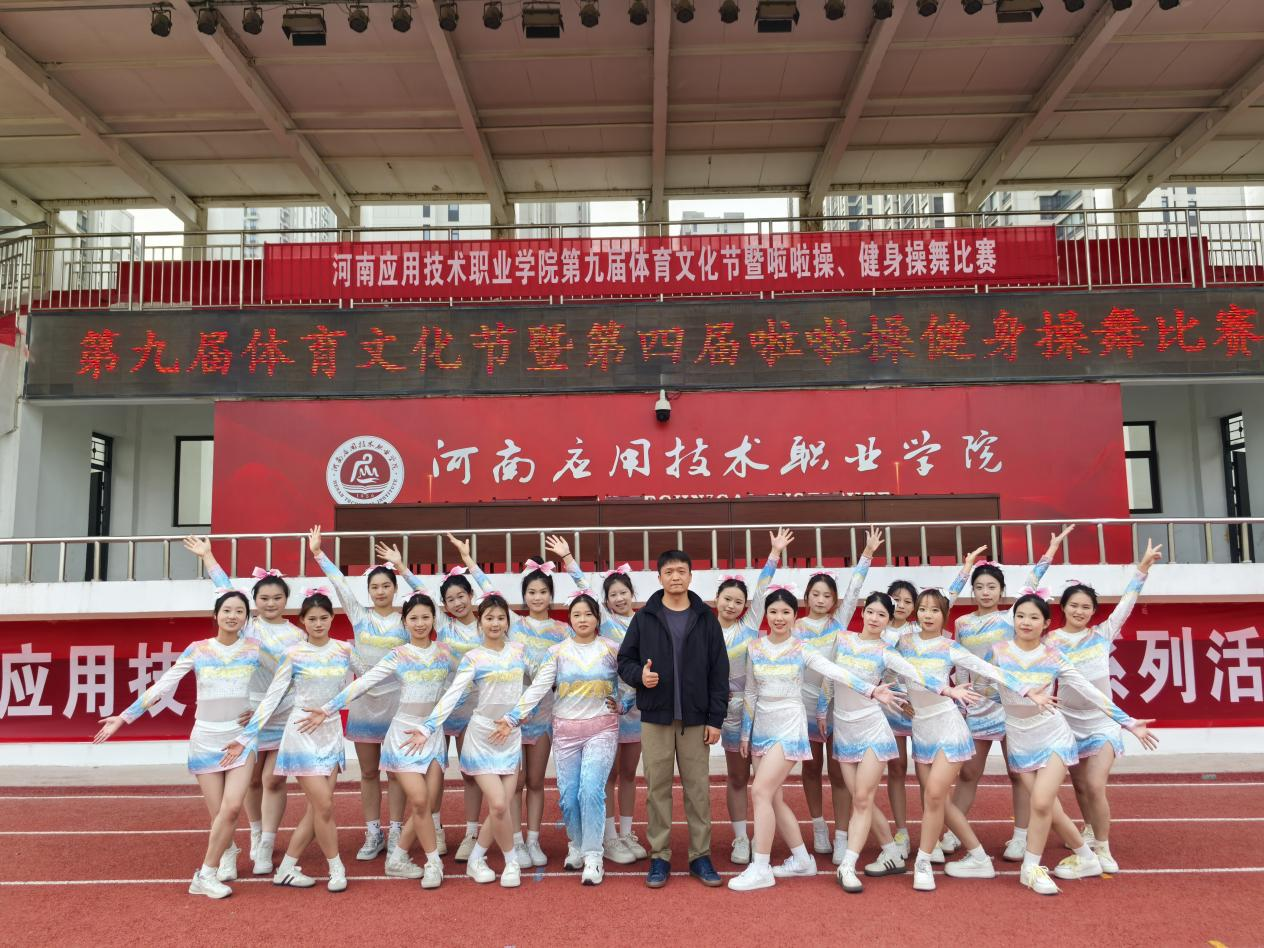 比赛现场气氛热烈非凡。啦啦操队员们手持花球,伴随着动感节拍灵动起舞,队形时而如繁花绽放,时而如浪潮奔涌,高难度的托举、同步的跳跃与灿烂的笑容交织成最富感染力的画面,将青春的活力与激情传递给在场的每一位观众;健身操则以刚柔并济的姿态惊艳亮相,刚劲有力的动作精准踩点,流畅多变的队形衔接自然,每一个伸展、每一次旋转都彰显着扎实的功底,展现出独特的运动魅力,赢得评委与观众的阵阵喝彩。